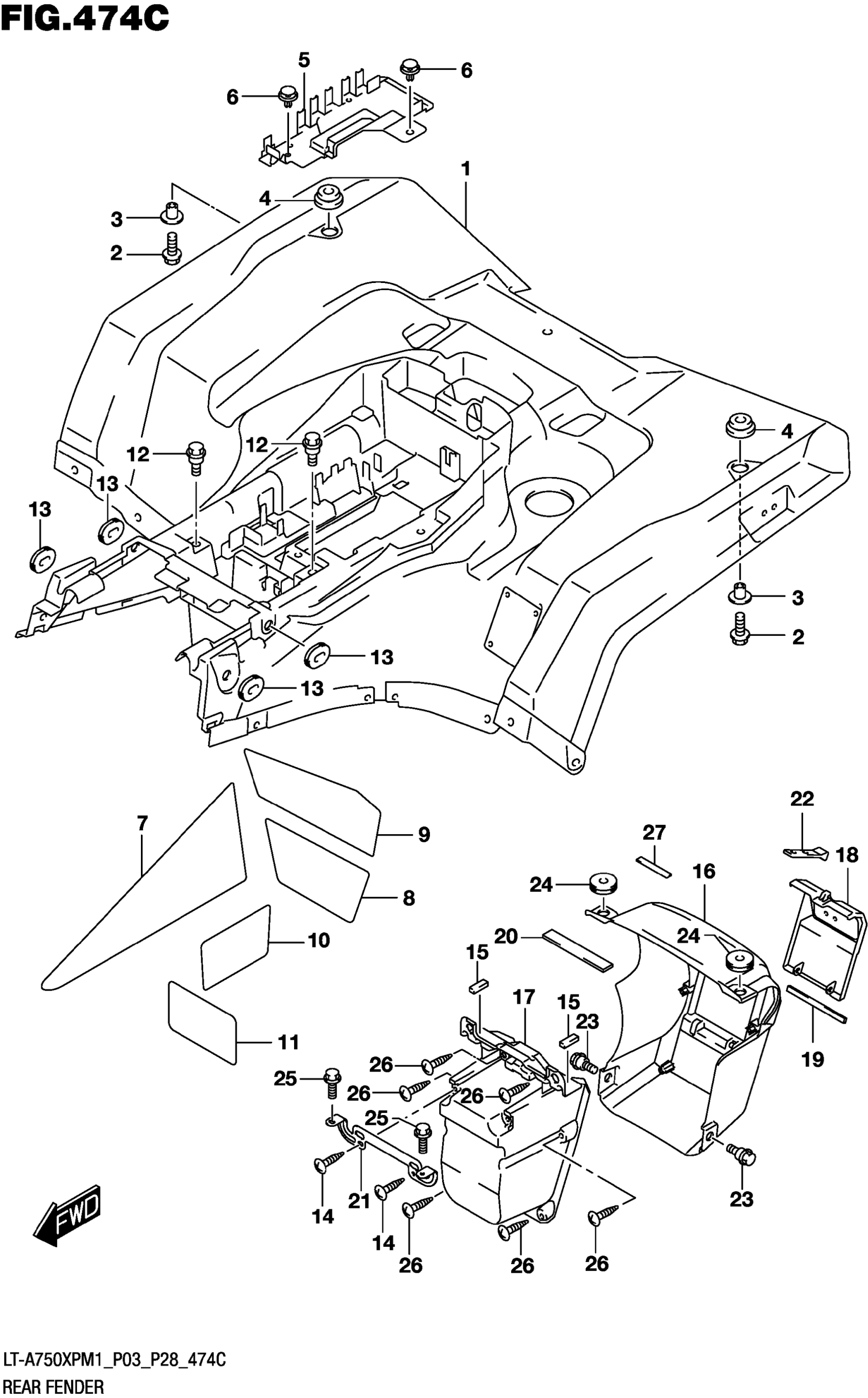 Suzuki LT-A750XPM1 (2021) REAR FENDER Diagram