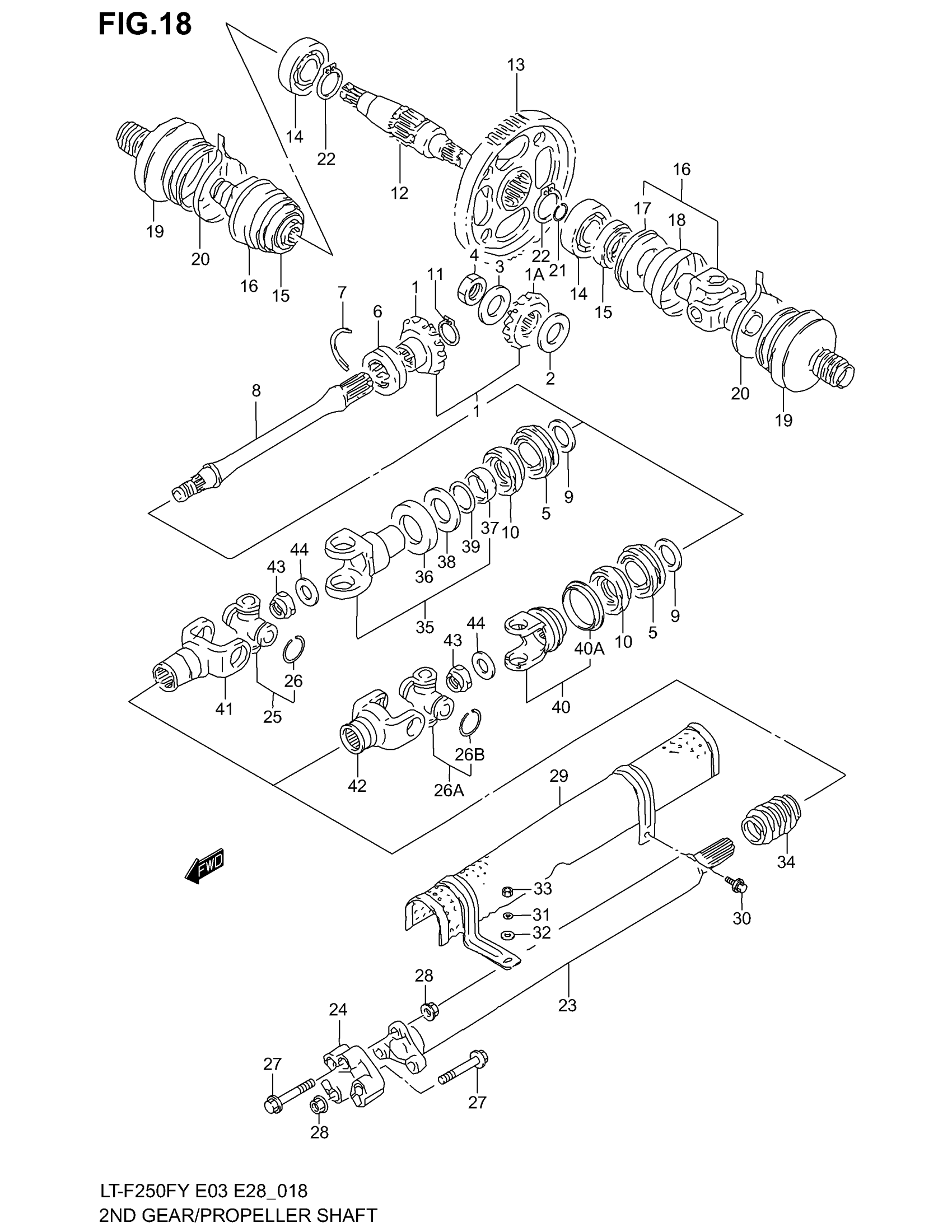 Suzuki LT-F250F (2002) SECONDARY GEAR - PROPELLER SHAFT Diagram
