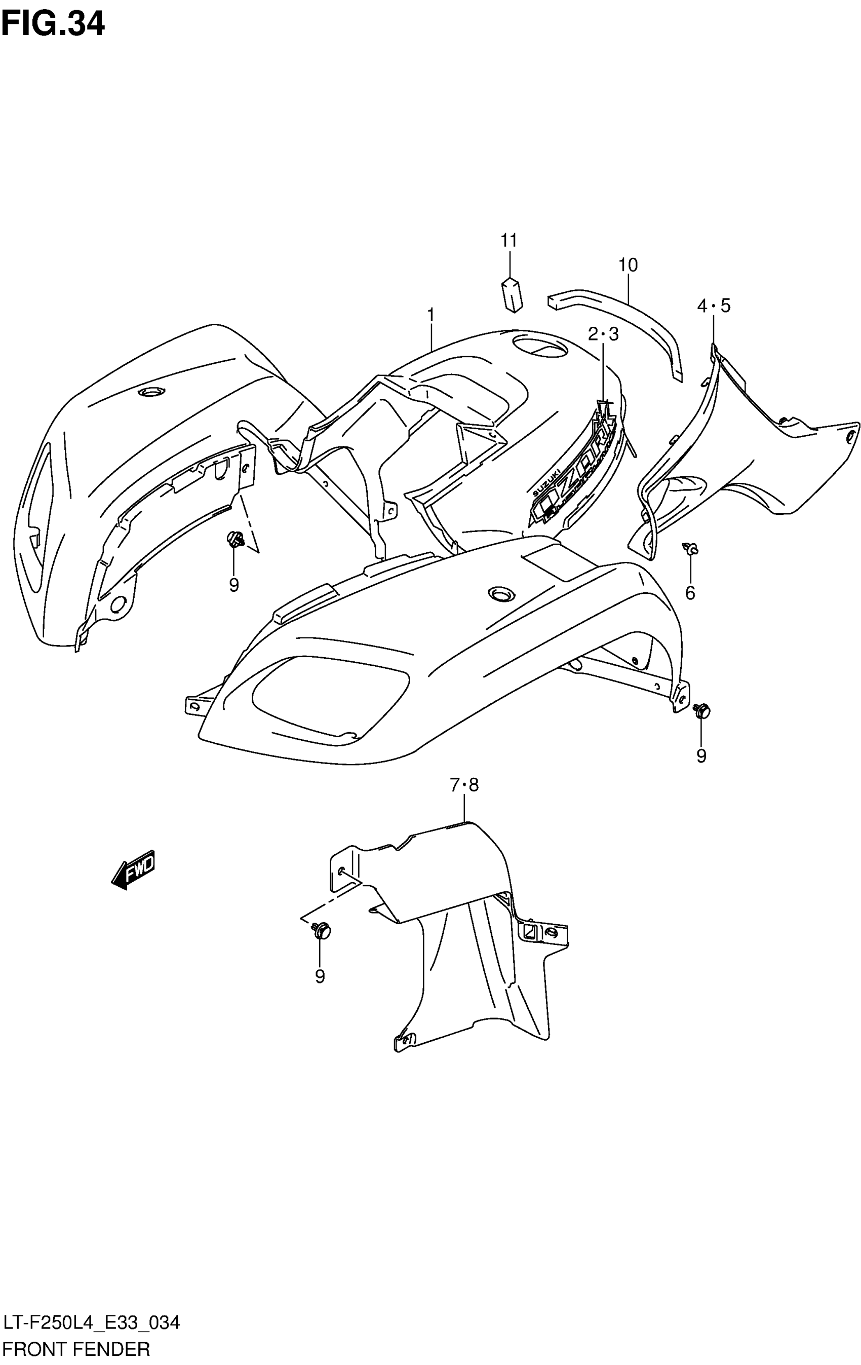 Suzuki LT-F250L4 (2014) FRONT FENDER Diagram