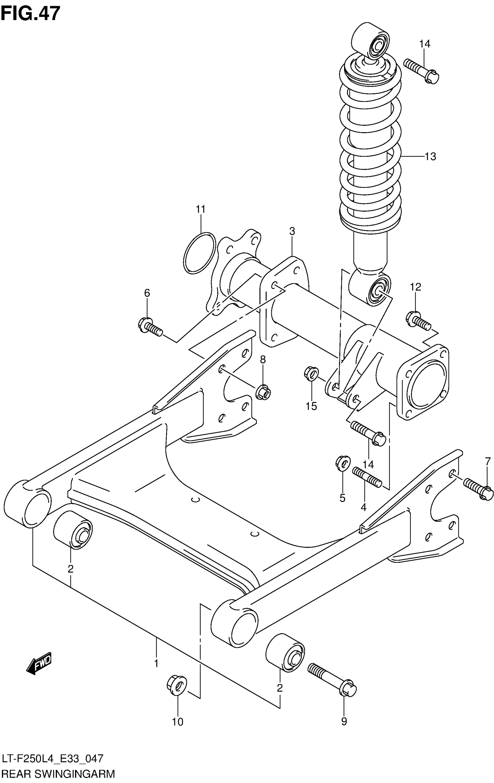 Suzuki LT-F250L4 (2014) REAR SWINGINGARM Diagram