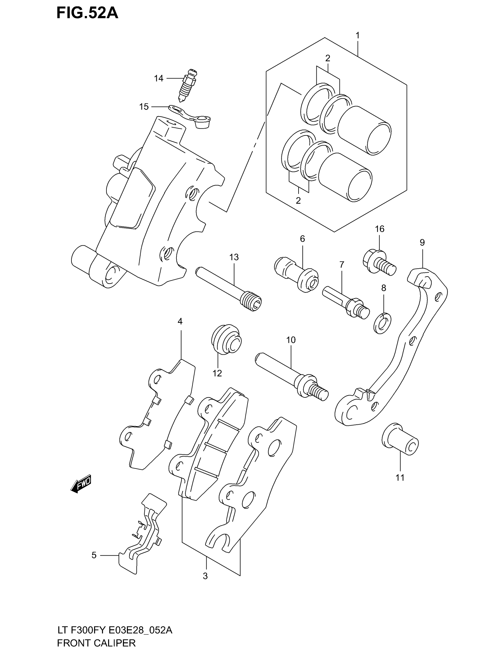 Suzuki LT-F300F (2002) FRONT CALIPER (MODEL K2) Diagram