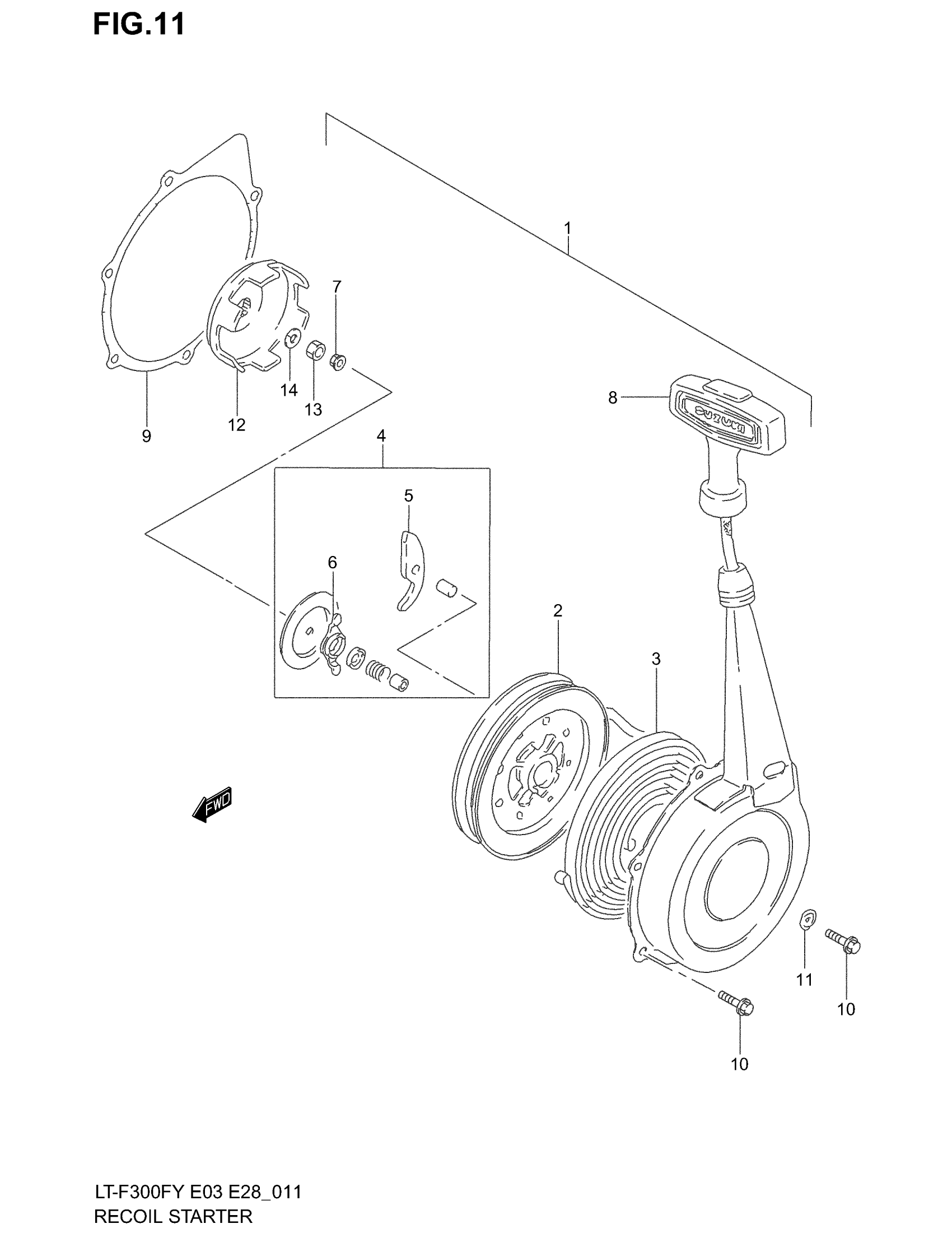 Suzuki LT-F300F (2002) RECOIL STARTER Diagram