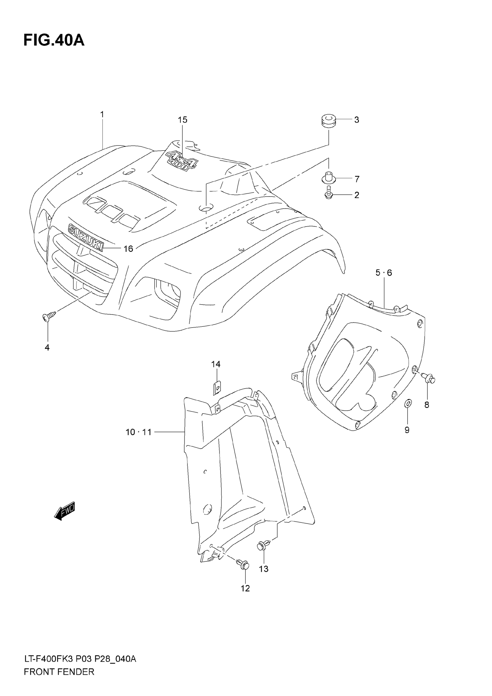 Suzuki LT-F400F (2007) FRONT FENDER (MODEL K4) Diagram