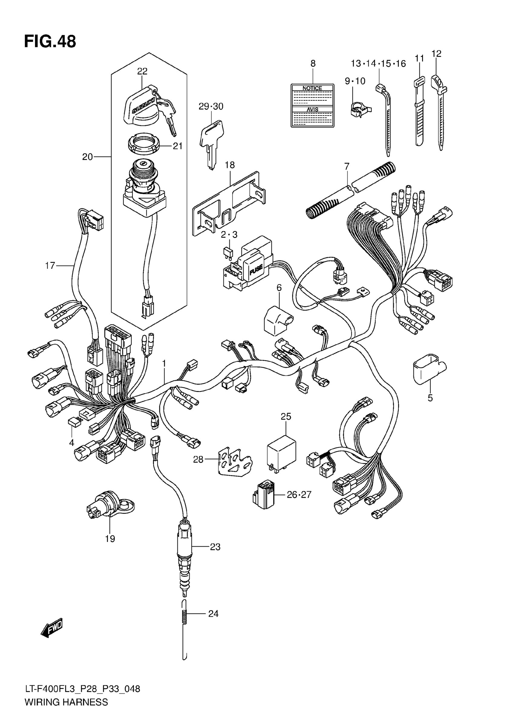 Suzuki LT-F400FL3 (2013) WIRING HARNESS (LT-F400FZL3 P28) Diagram