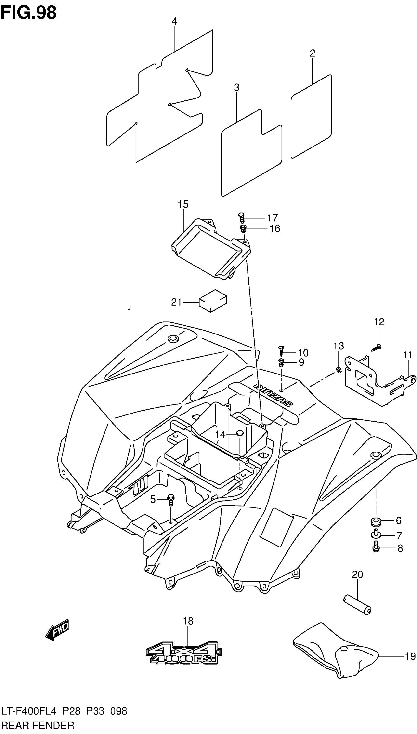 Suzuki LT-F400FL4 (2014) REAR FENDER (LT-F400FL4 P28) Diagram