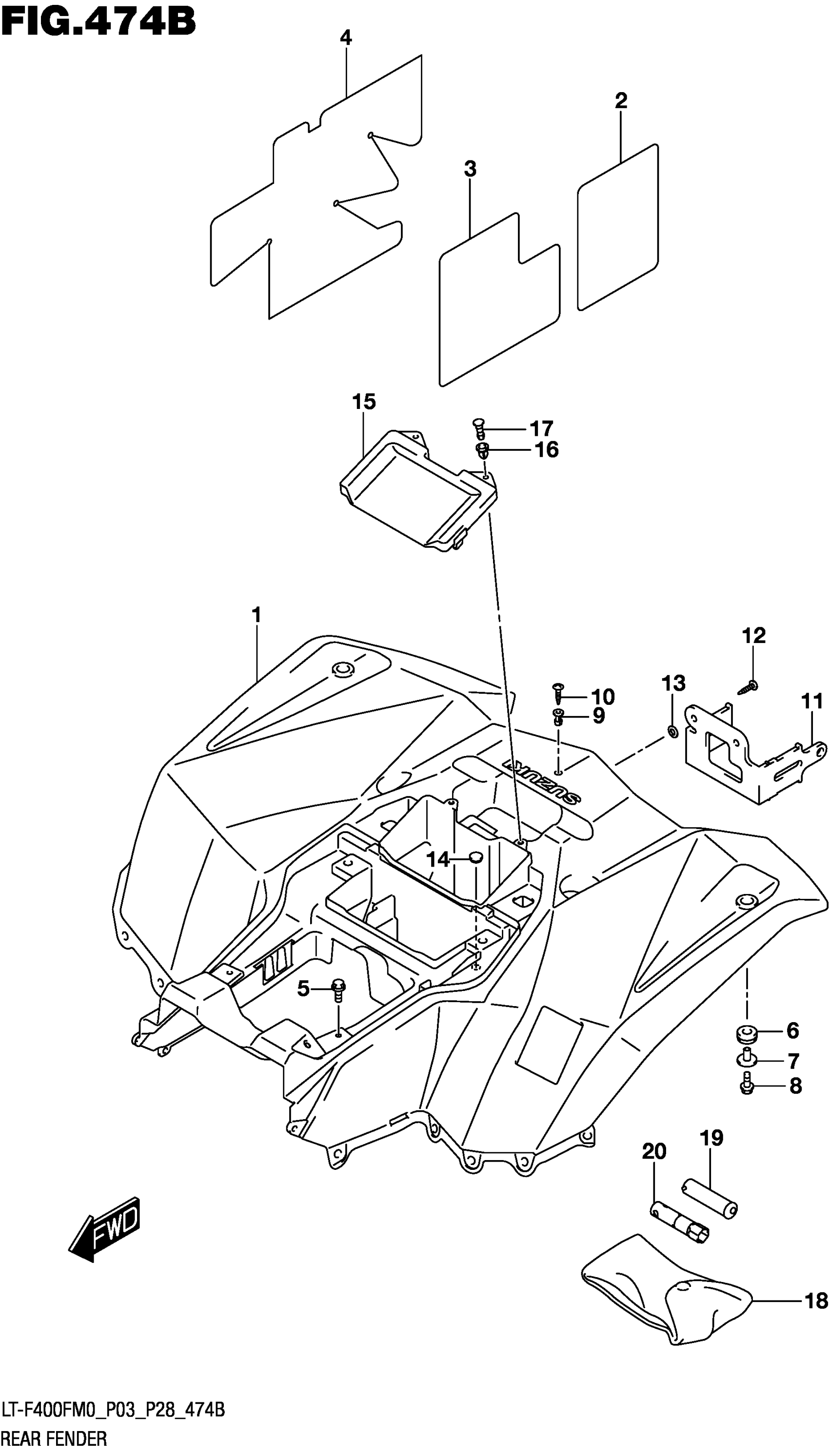 Suzuki LT-F400FM0 (2020) REAR FENDER (LT-F400FM0 P28) Diagram
