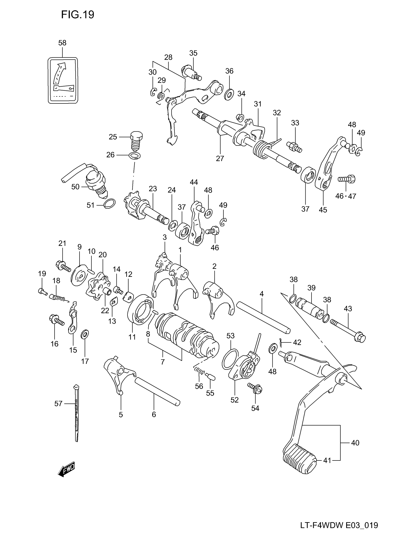 Suzuki LT-F4WD (1998) GEAR SHIFTING Diagram