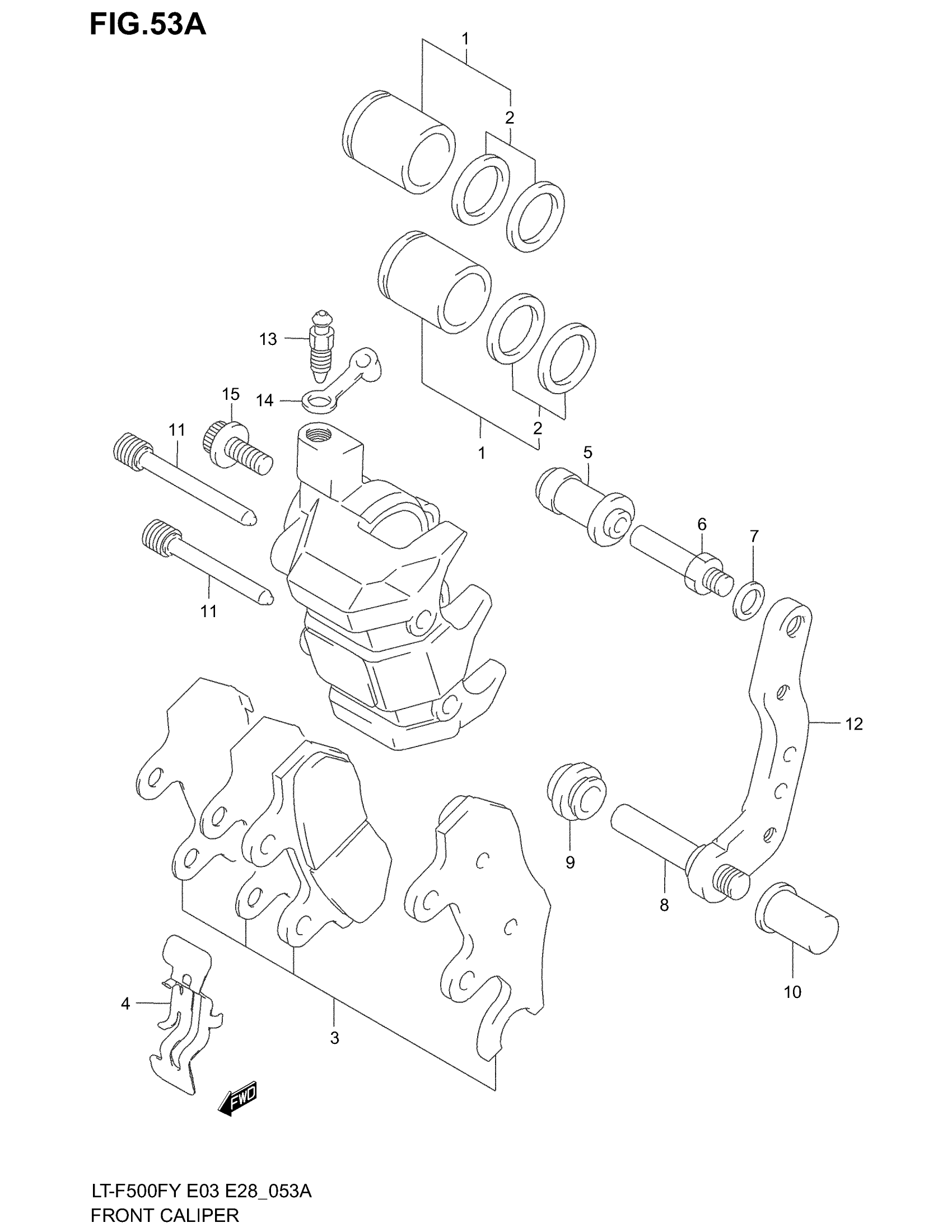 Suzuki LT-F500F (2002) FRONT CALIPER (MODEL Y/K1/K2) Diagram
