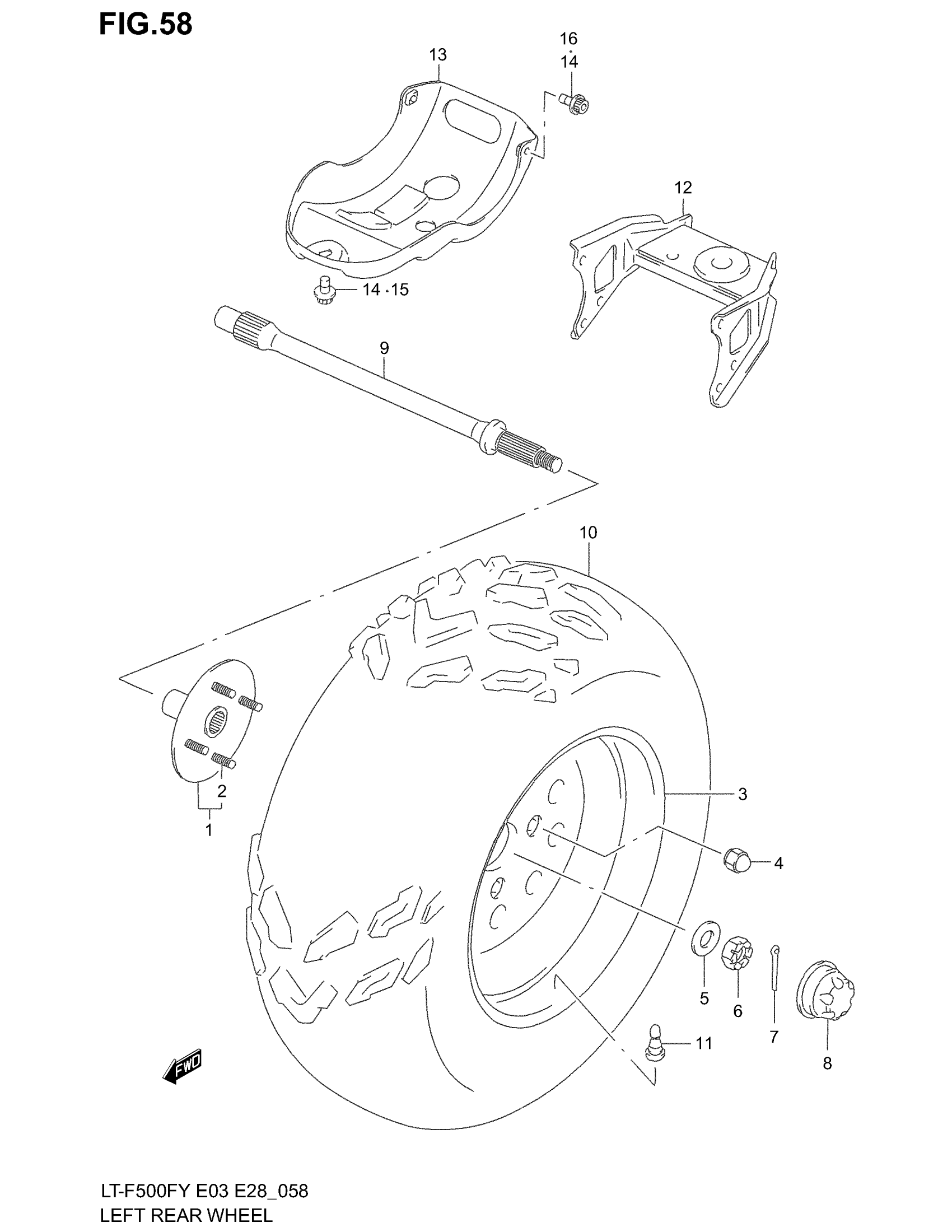 Suzuki LT-F500F (2002) LEFT REAR WHEEL (MODEL W/X) Diagram