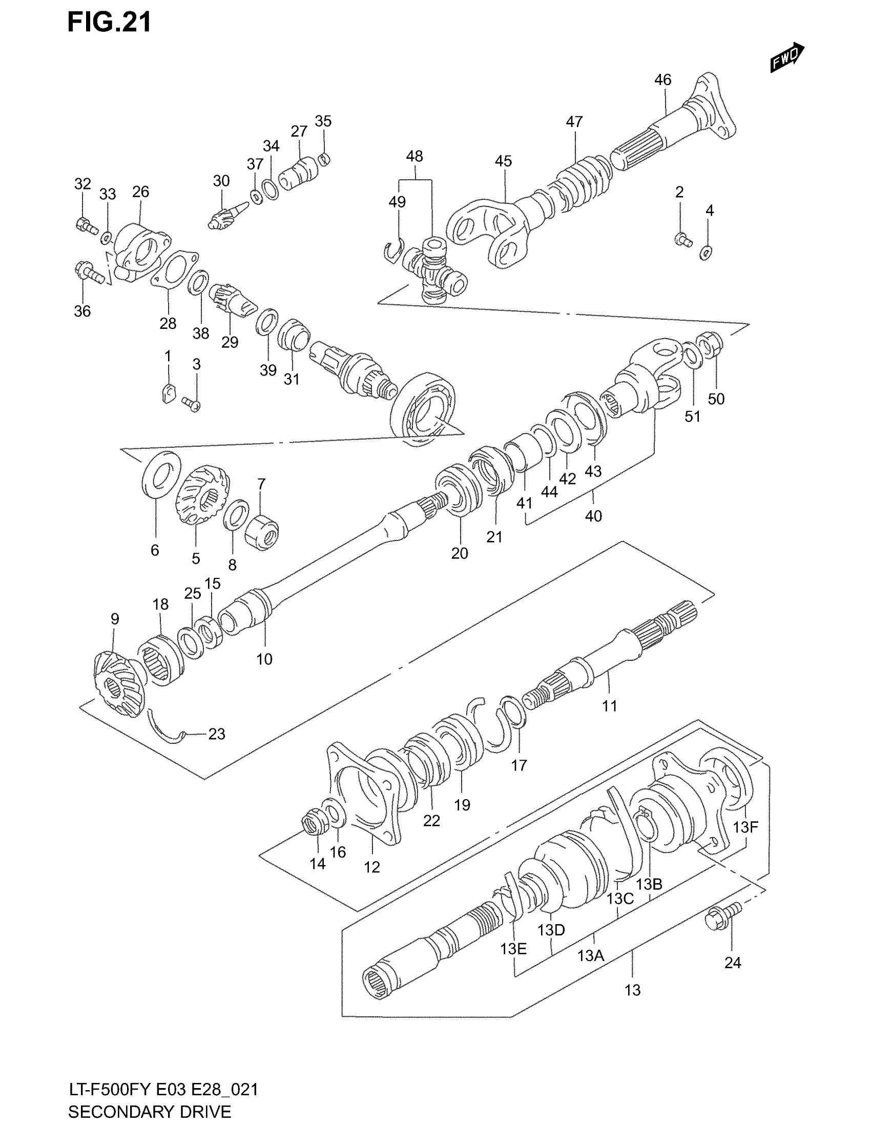 Suzuki LT-F500F (2002) SECONDARY DRIVE (MODEL W/X/Y) Diagram