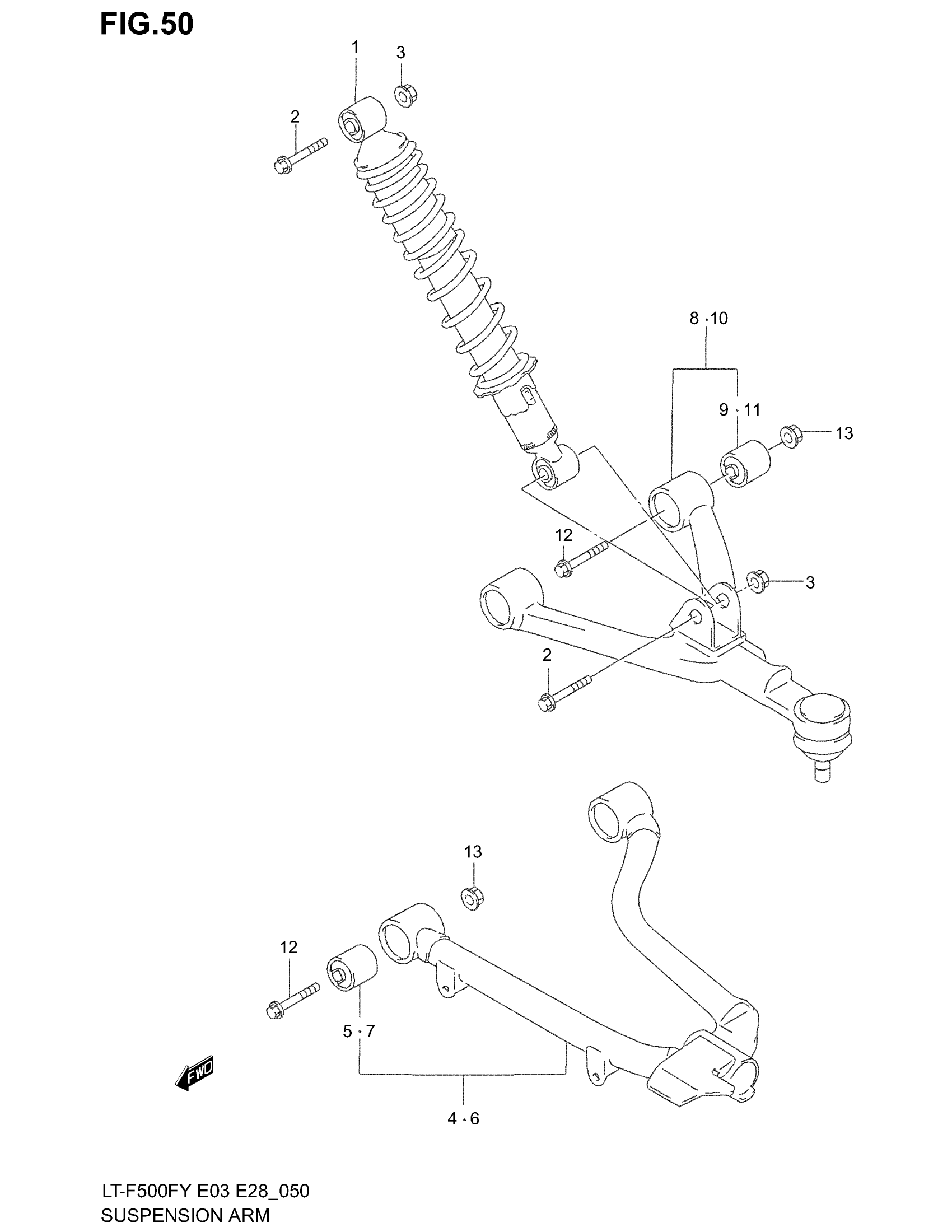 Suzuki LT-F500F (2002) SUSPENSION ARM (MODEL W/X) Diagram