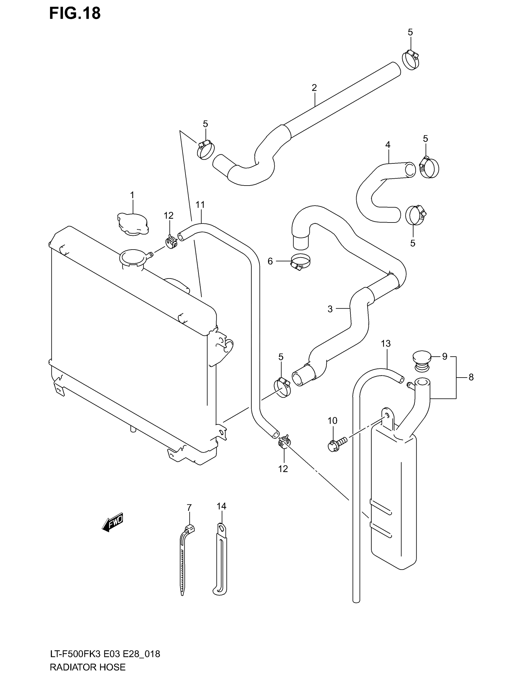 Suzuki LT-F500F (2003) RADIATOR HOSE Diagram