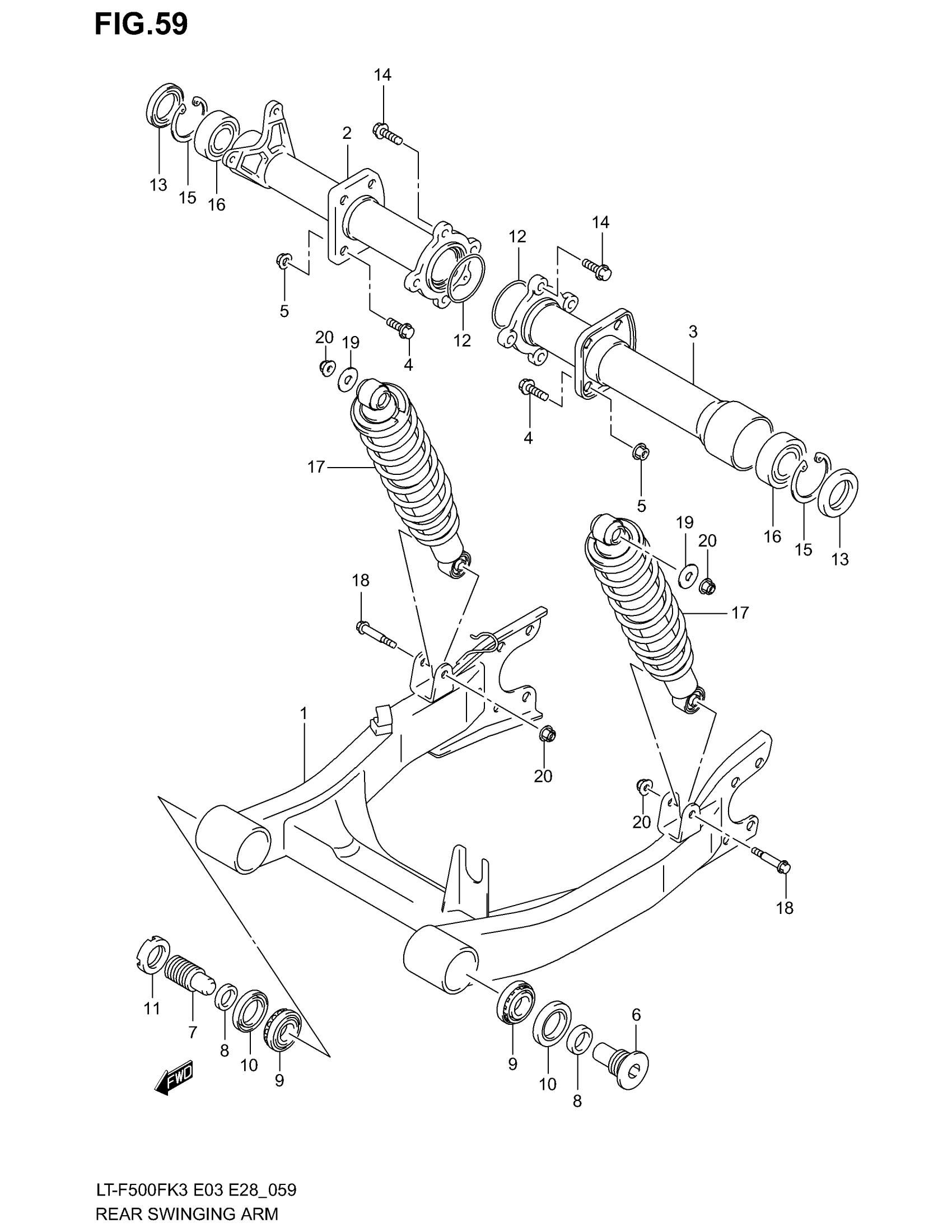 Suzuki LT-F500F (2003) REAR SWINGINGARM Diagram