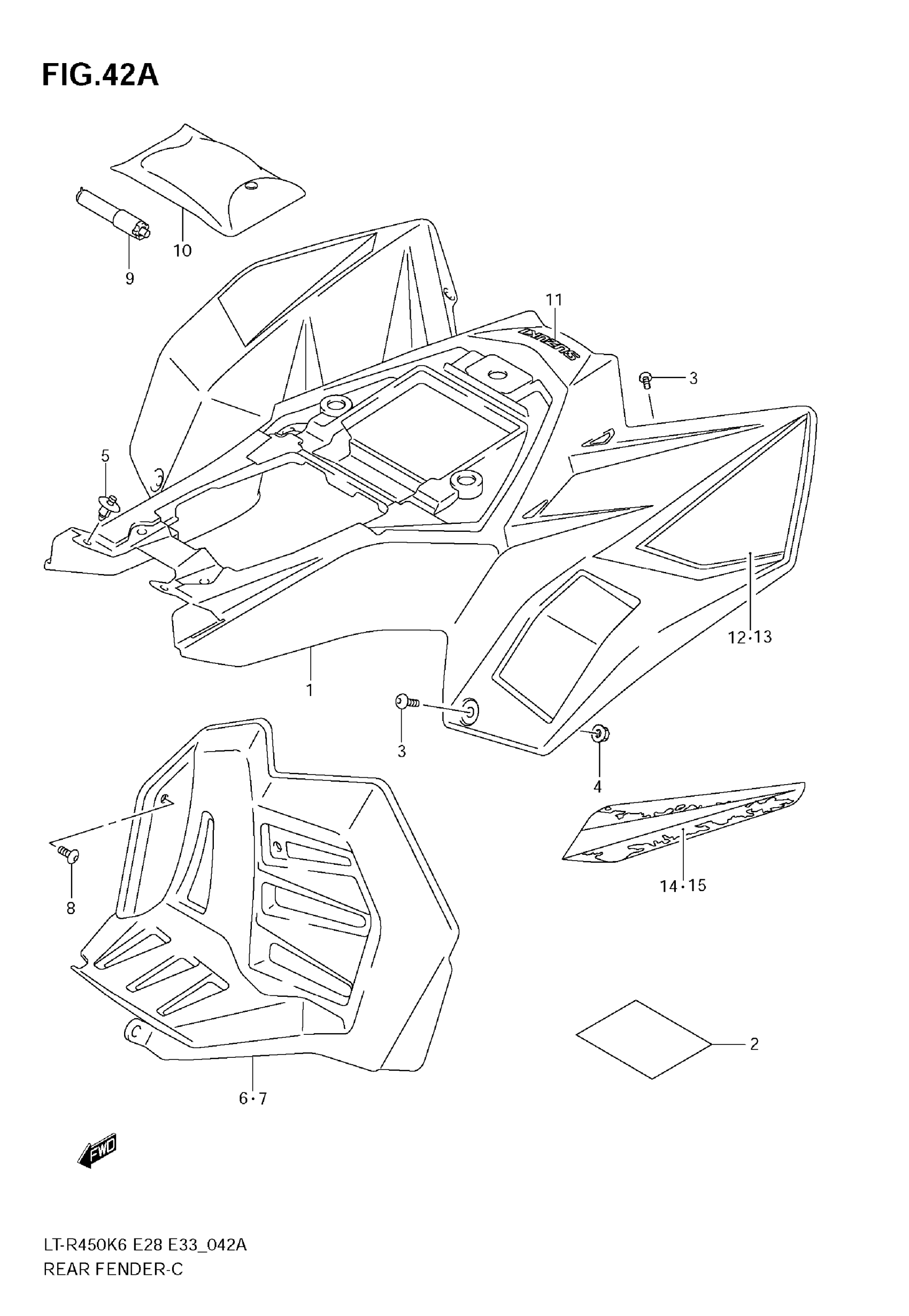 Suzuki LT-R450 (2009) REAR FENDER (MODEL K8) Diagram