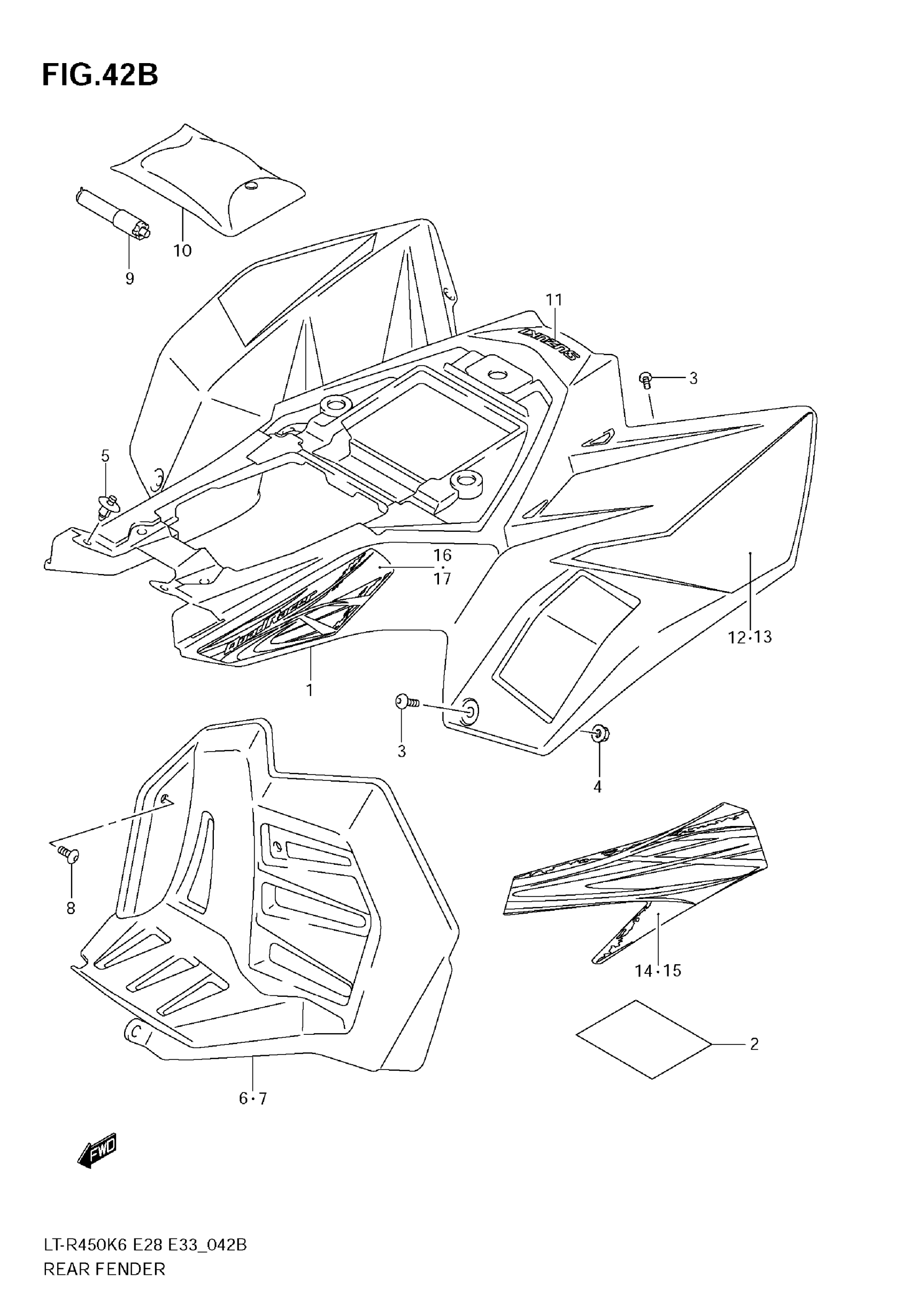 Suzuki LT-R450 (2009) REAR FENDER (MODEL K9) Diagram