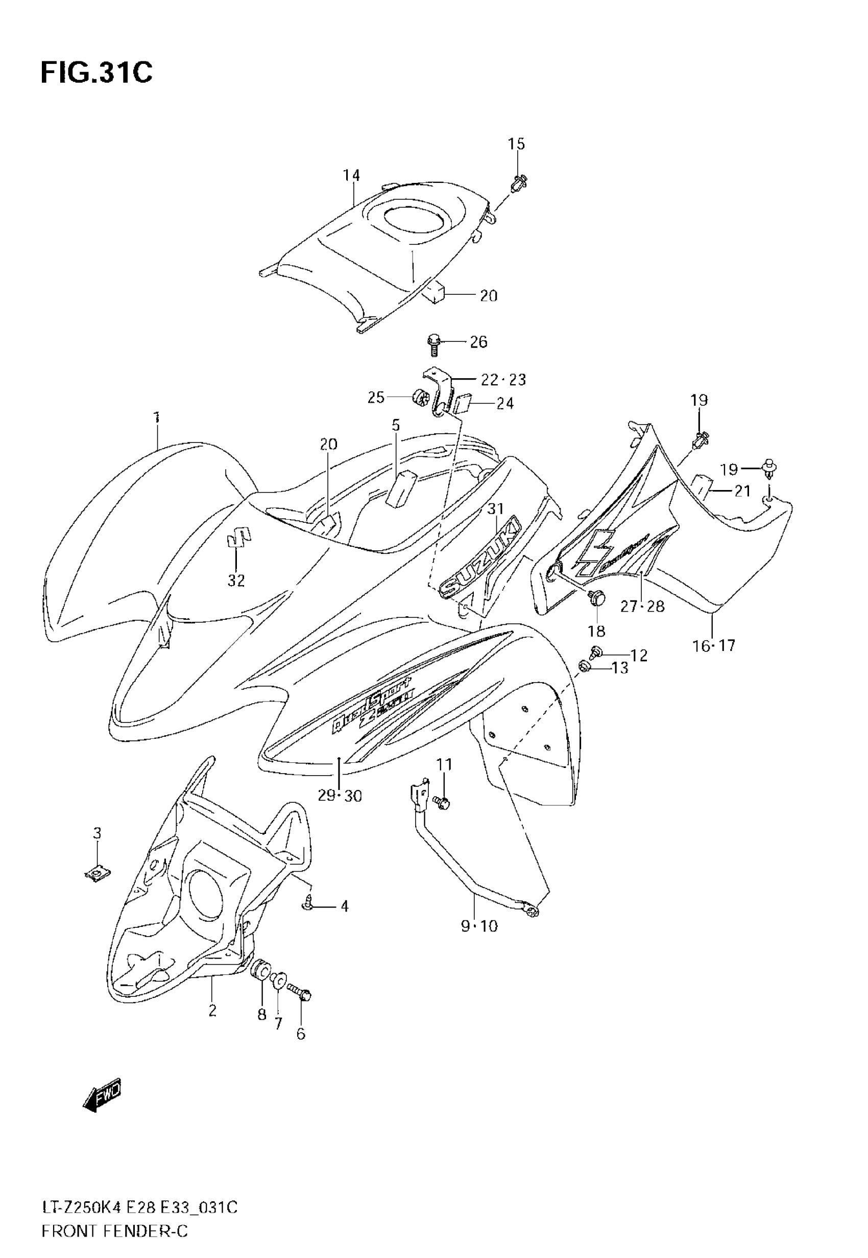 Suzuki LT-Z250 (2008) FRONT FENDER (MODEL K7) Diagram