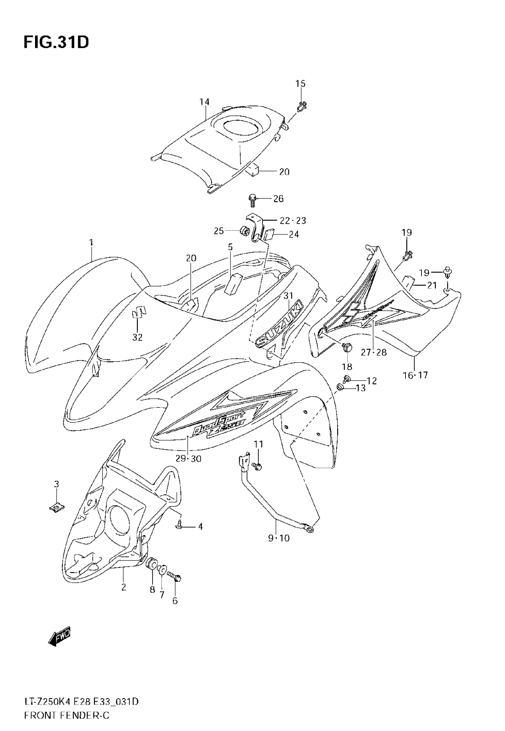 Suzuki LT-Z250 (2008) FRONT FENDER (MODEL K8) Diagram