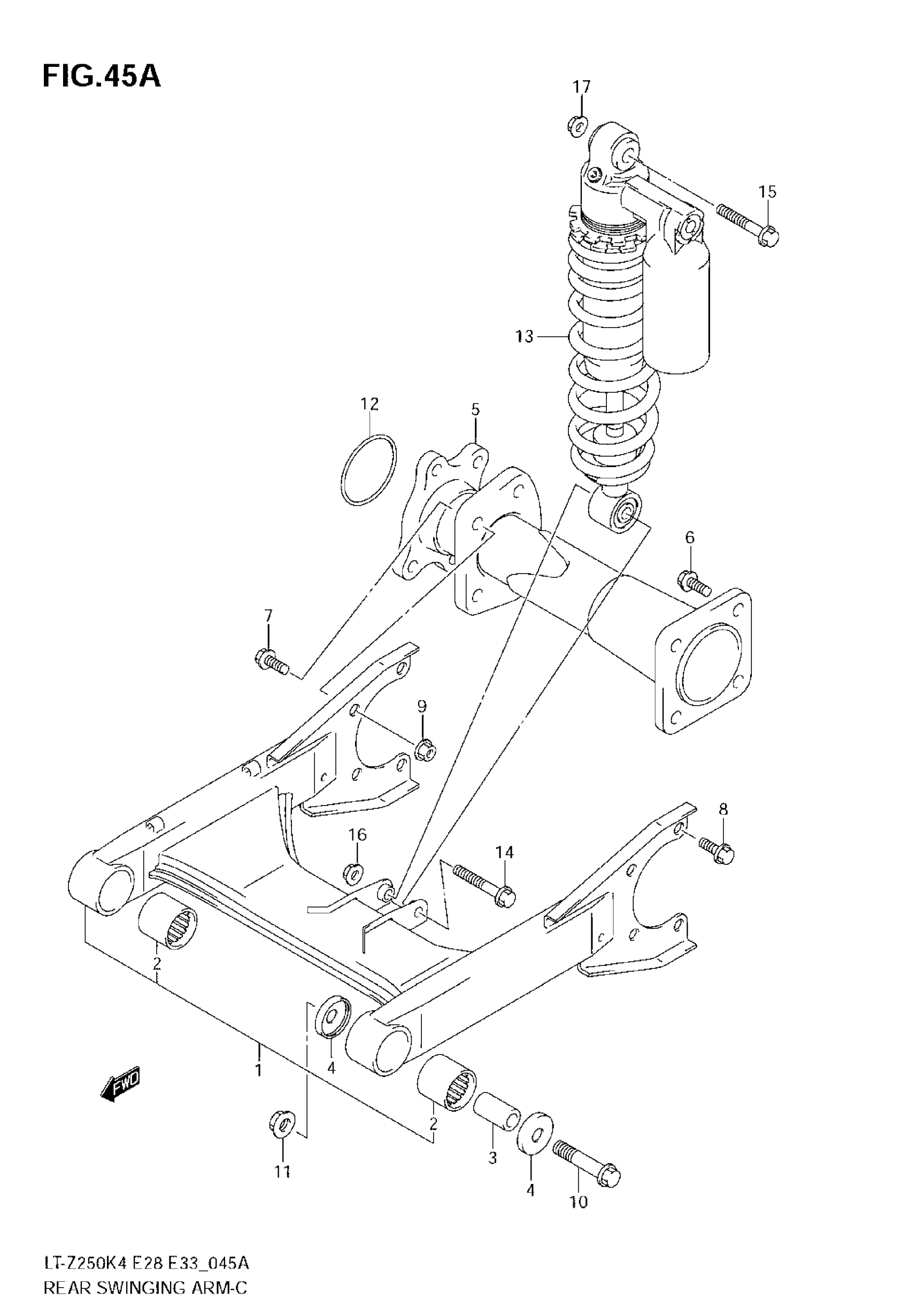 Suzuki LT-Z250 (2008) REAR SWINGINGARM (MODEL K6/K7/K8) Diagram