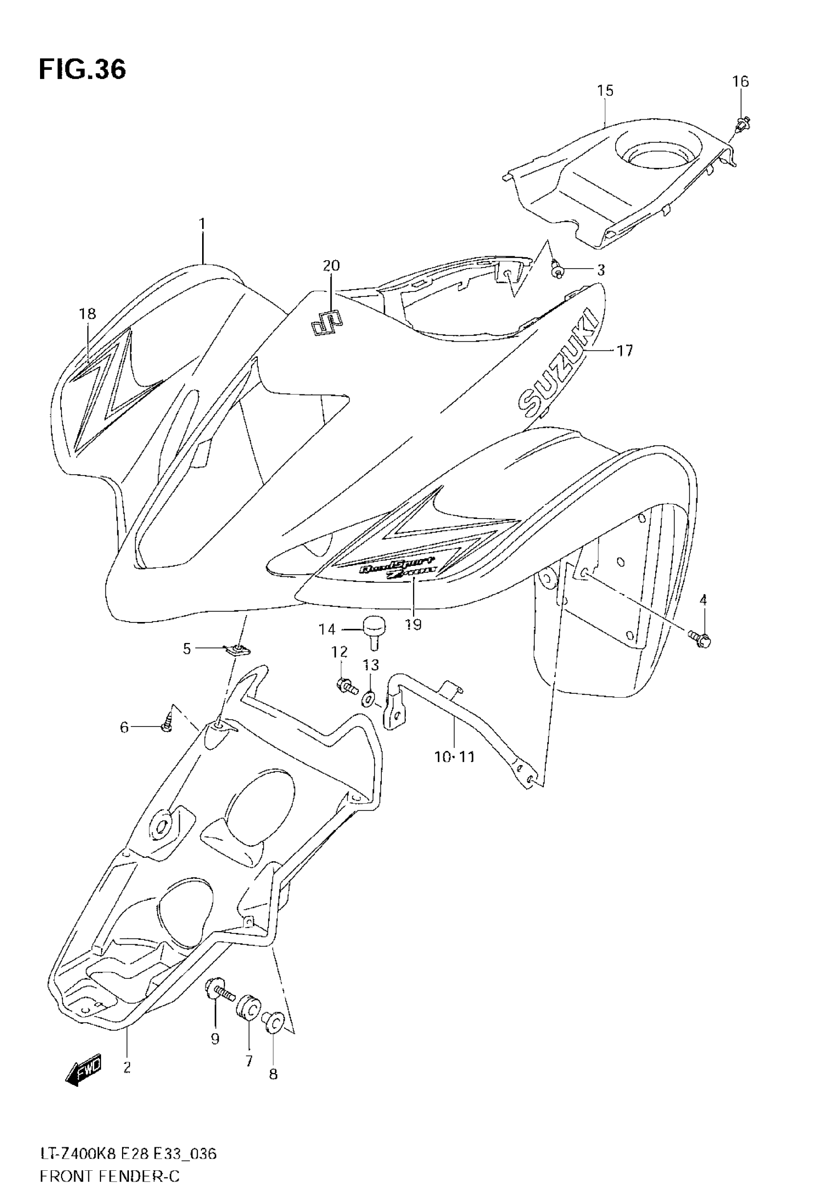 Suzuki LT-Z400 (2008) FRONT FENDER Diagram