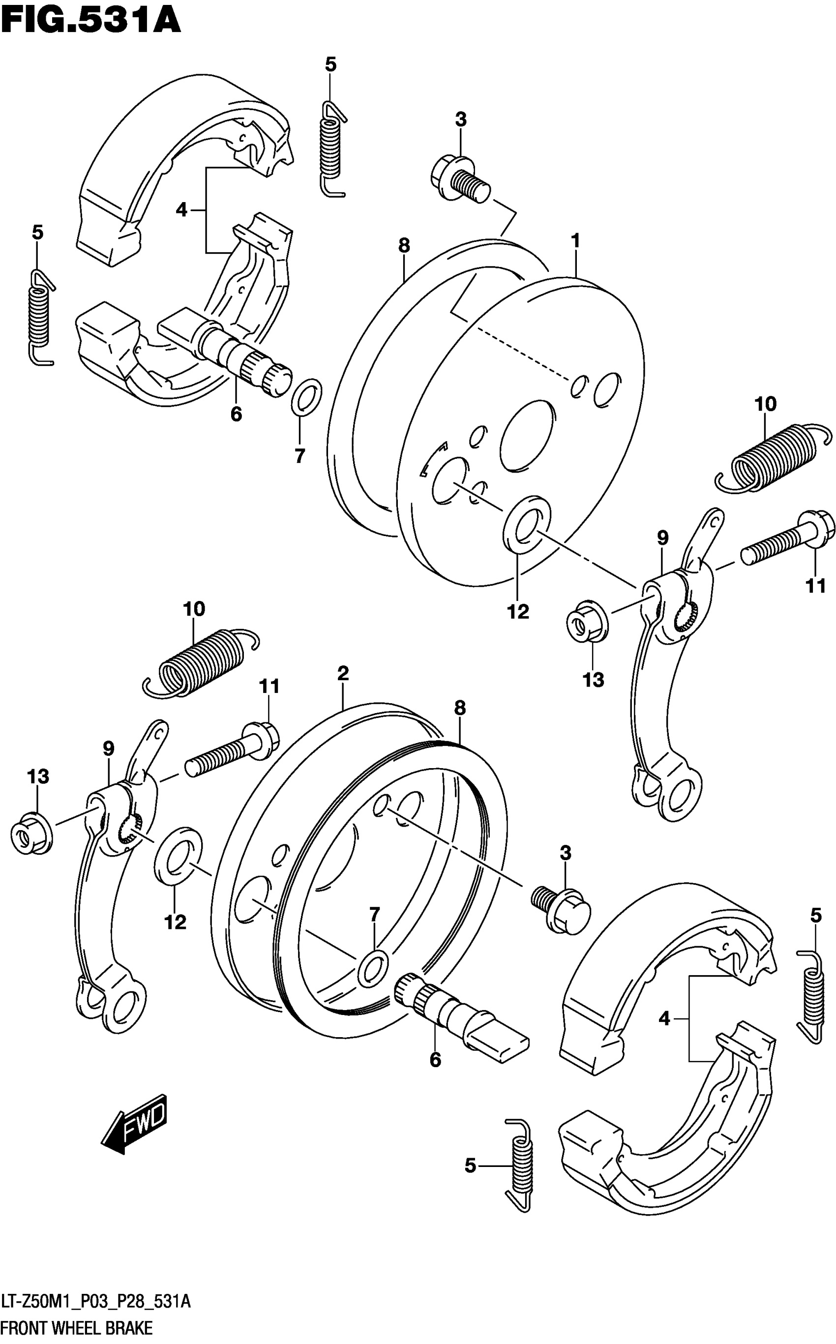 Suzuki LT-Z50M1 (2021) FRONT WHEEL BRAKE Diagram
