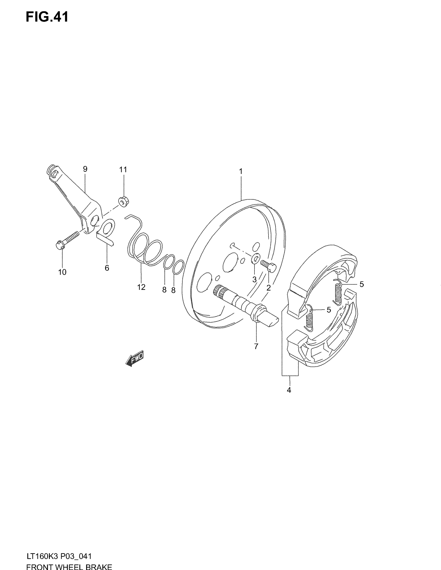 Suzuki LT160 (2004) FRONT WHEEL BRAKE Diagram