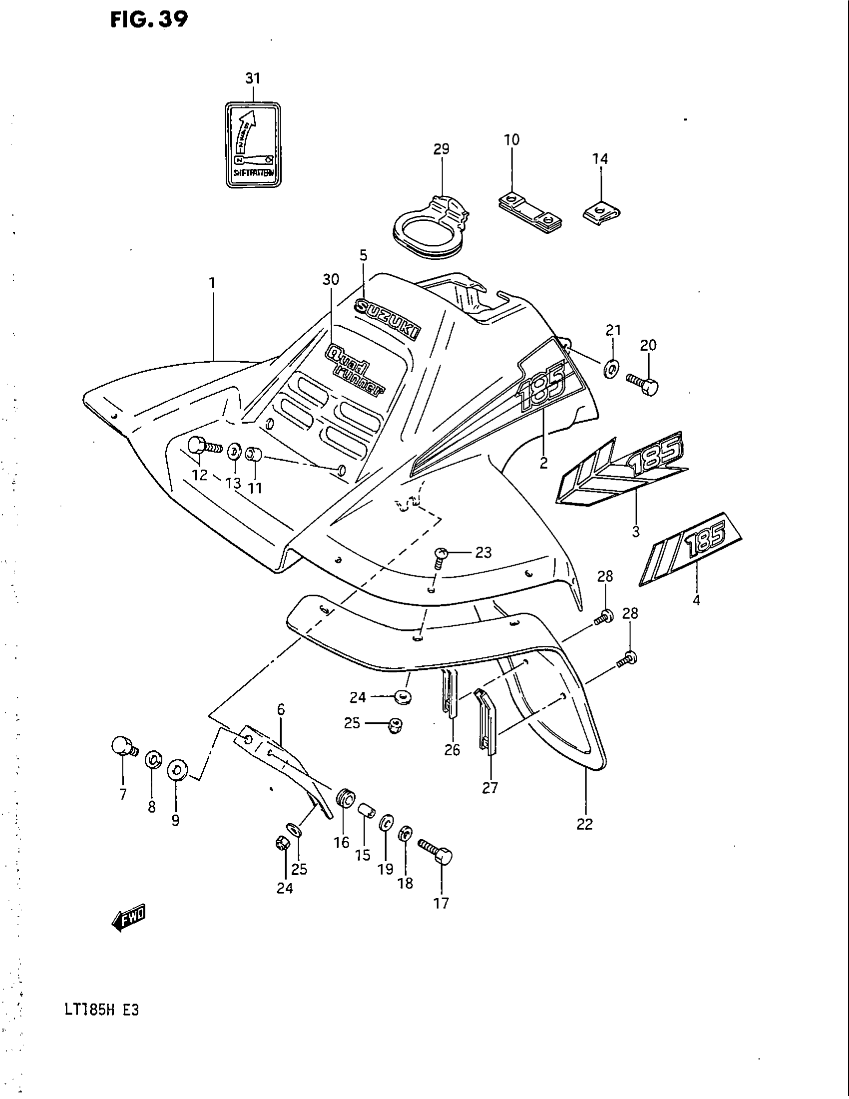 Suzuki LT185 (1987) FRONT FENDER (MODEL F/G/H) Diagram