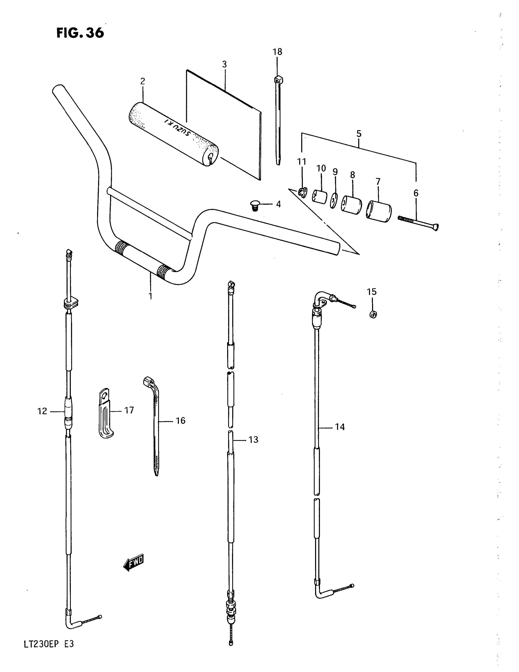 Suzuki LT230E (1993) HANDLEBAR - CONTROL CABLE Diagram