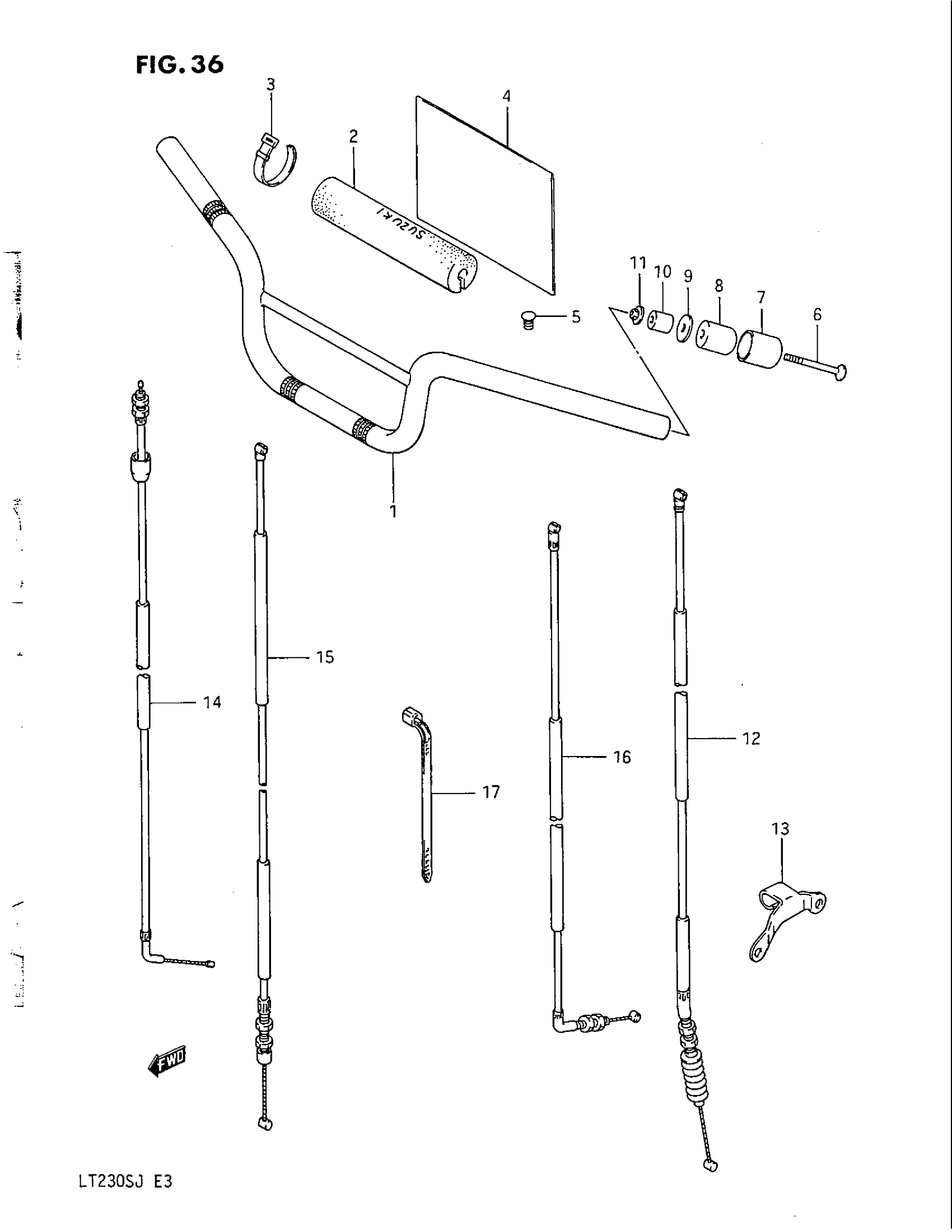 Suzuki LT230S (1988) HANDLEBAR - CONTROL CABLE Diagram