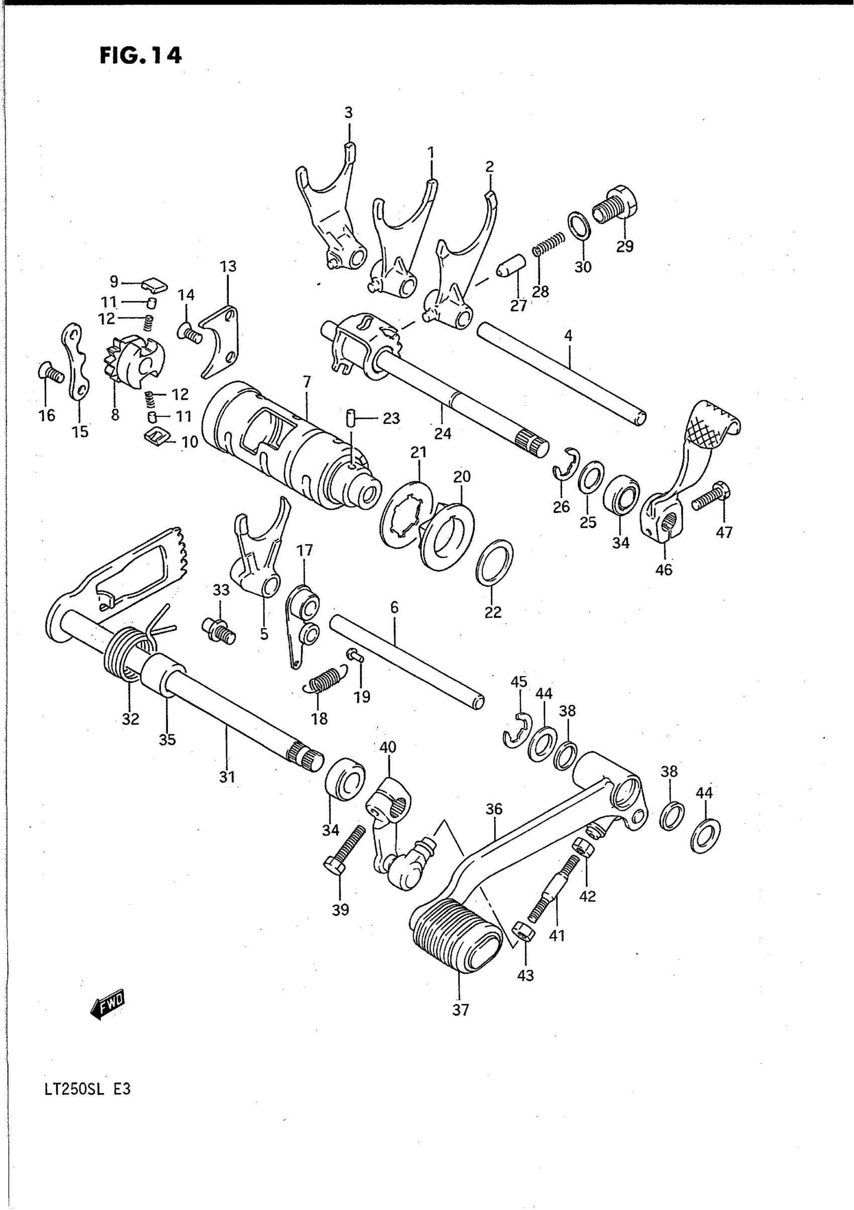 Suzuki LT250S (1990) GEAR SHIFTING Diagram
