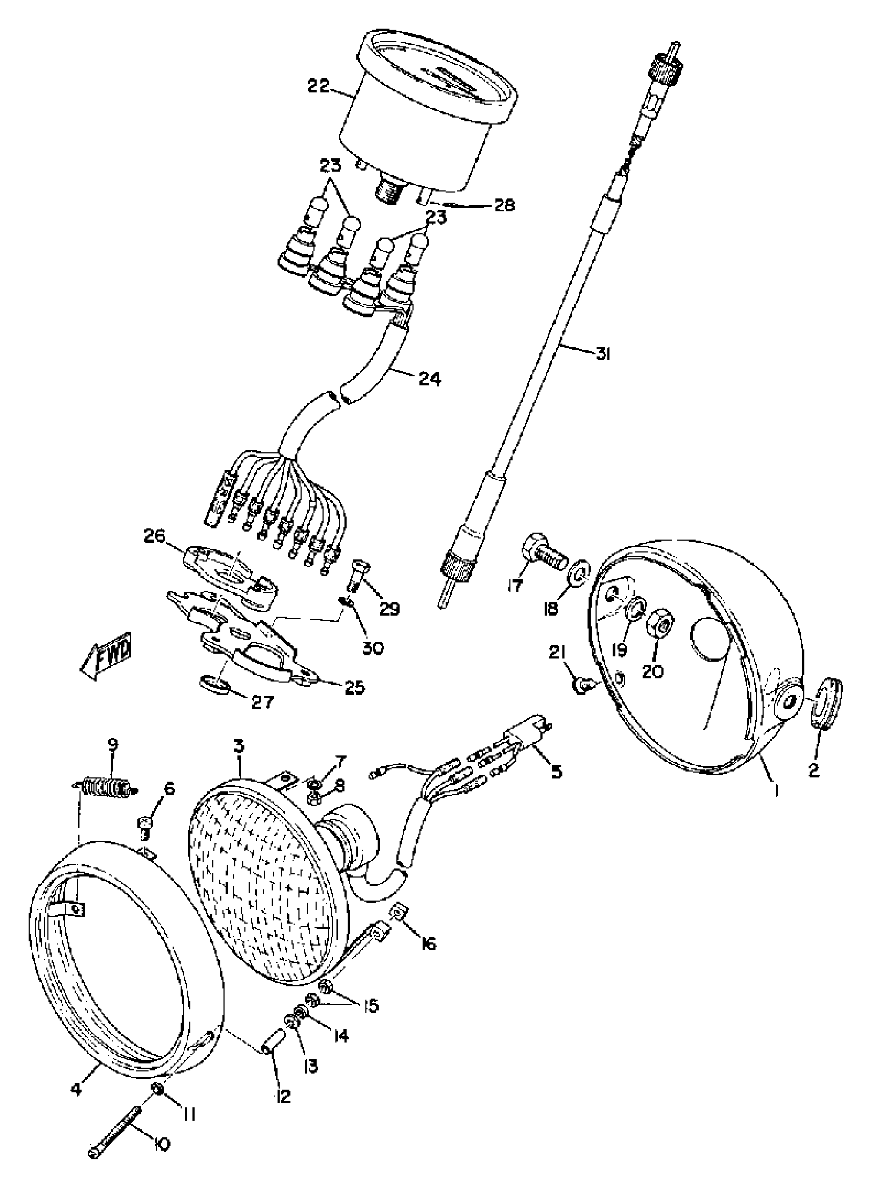 Yamaha LT3MX (LT3MX) LT20 1973 HEAD LAMP SPEEDOMETER Diagram