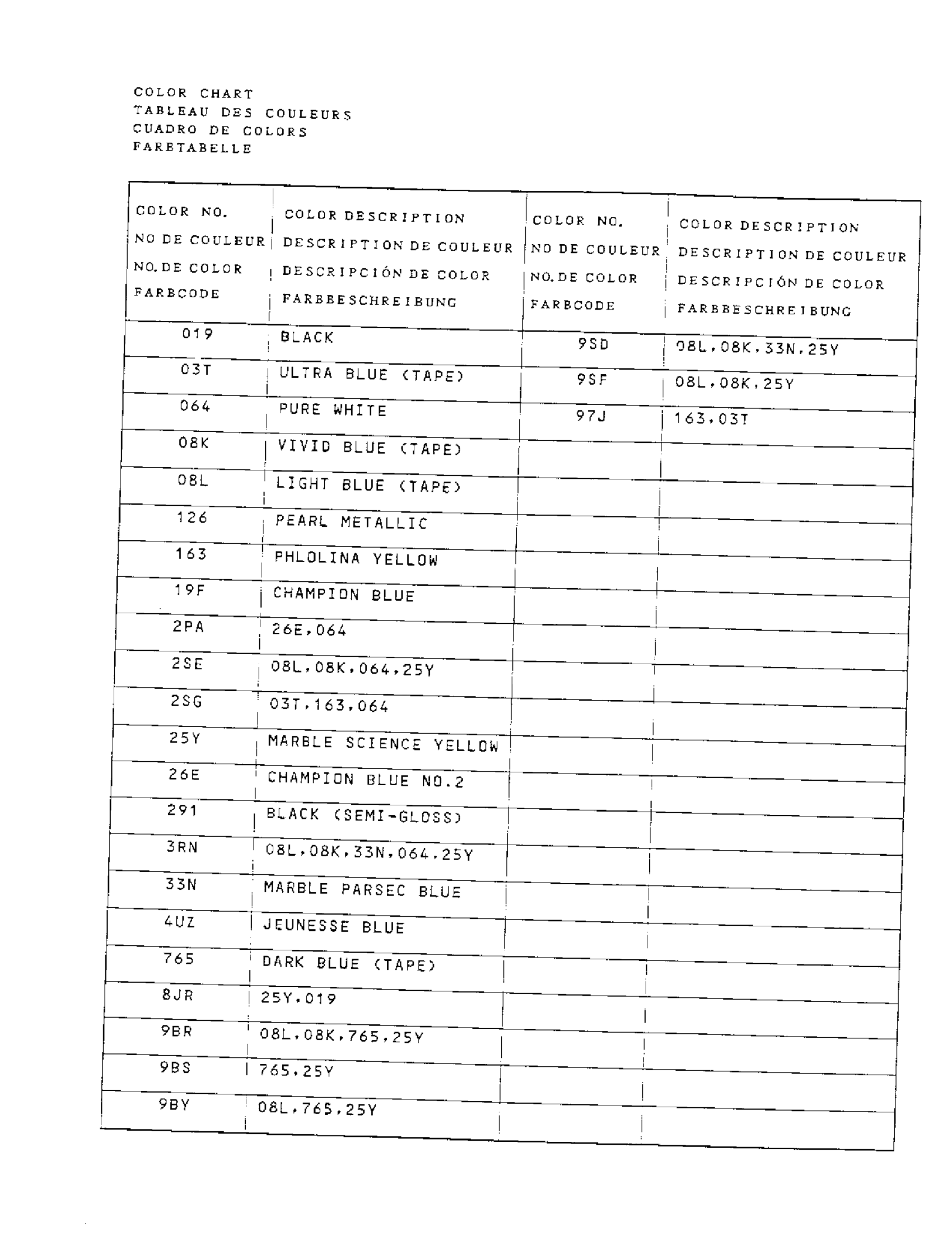 Suzuki LT500R (1987) COLOR CHART Diagram