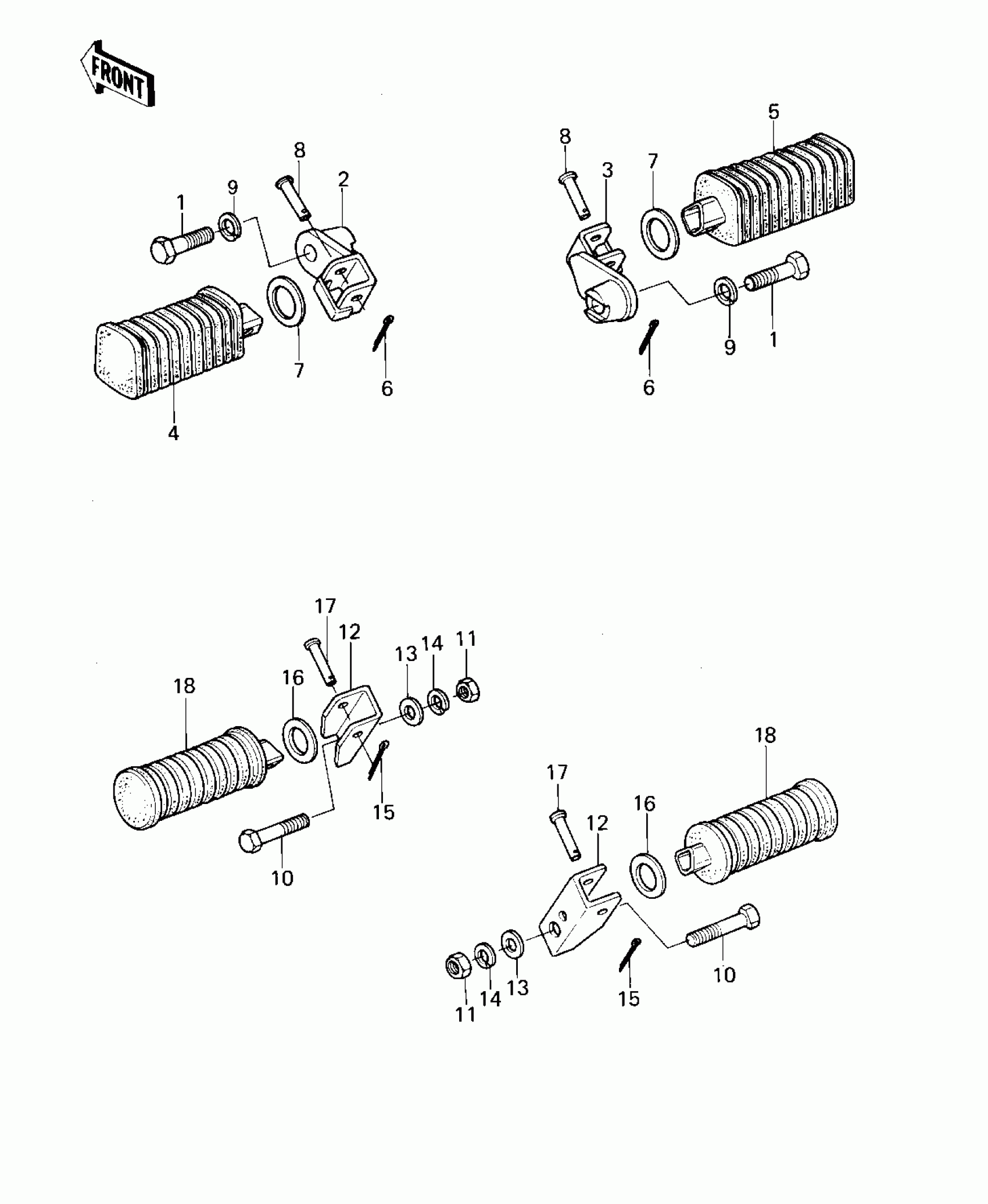 Kawasaki LTD Belt FOOTRESTS ('80 D1) Diagram
