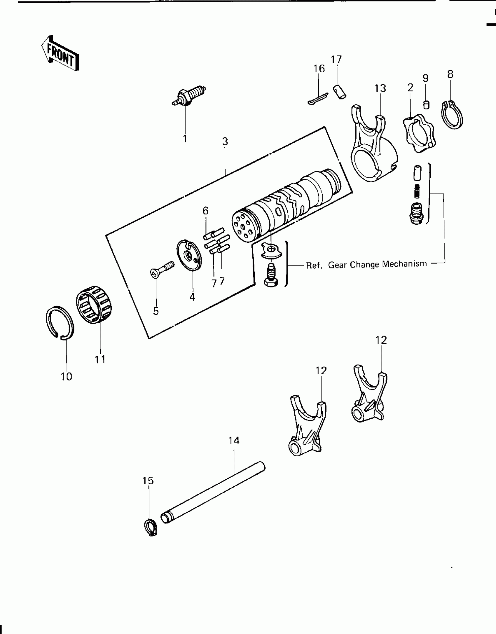 Kawasaki LTD GEAR CHANGE DRUM & FORKS Diagram