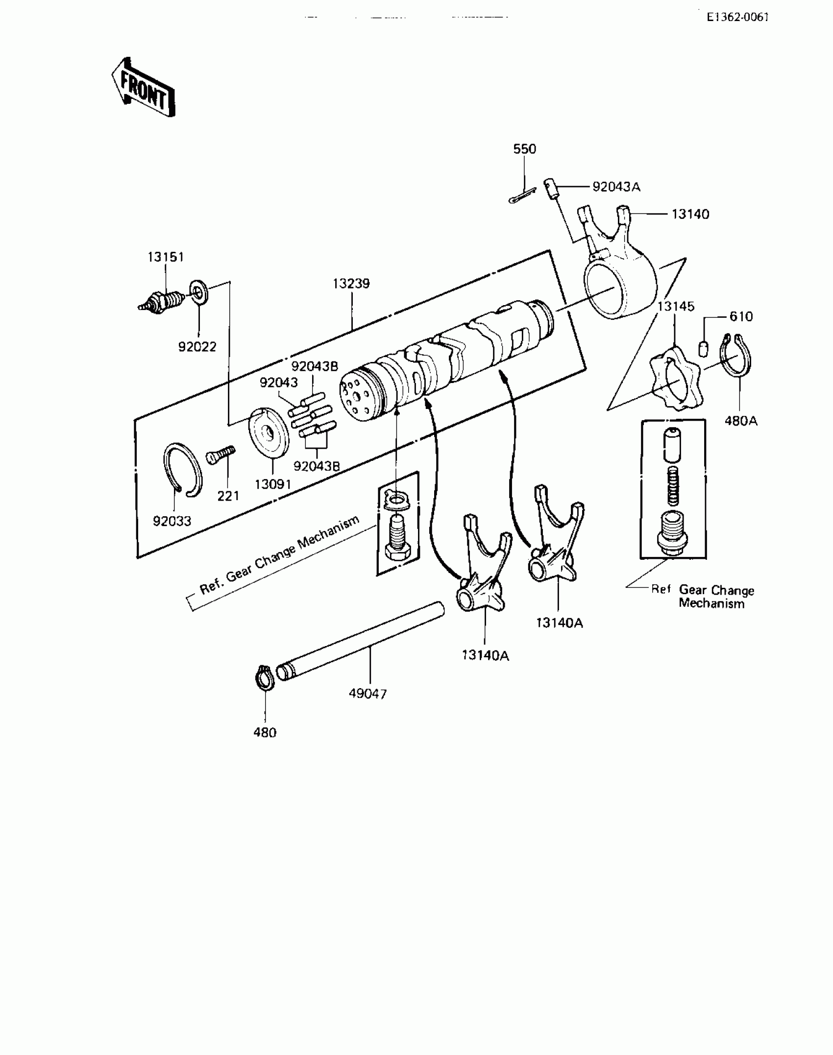 Kawasaki LTD Shaft GEAR CHANGE DRUM & FORKS Diagram