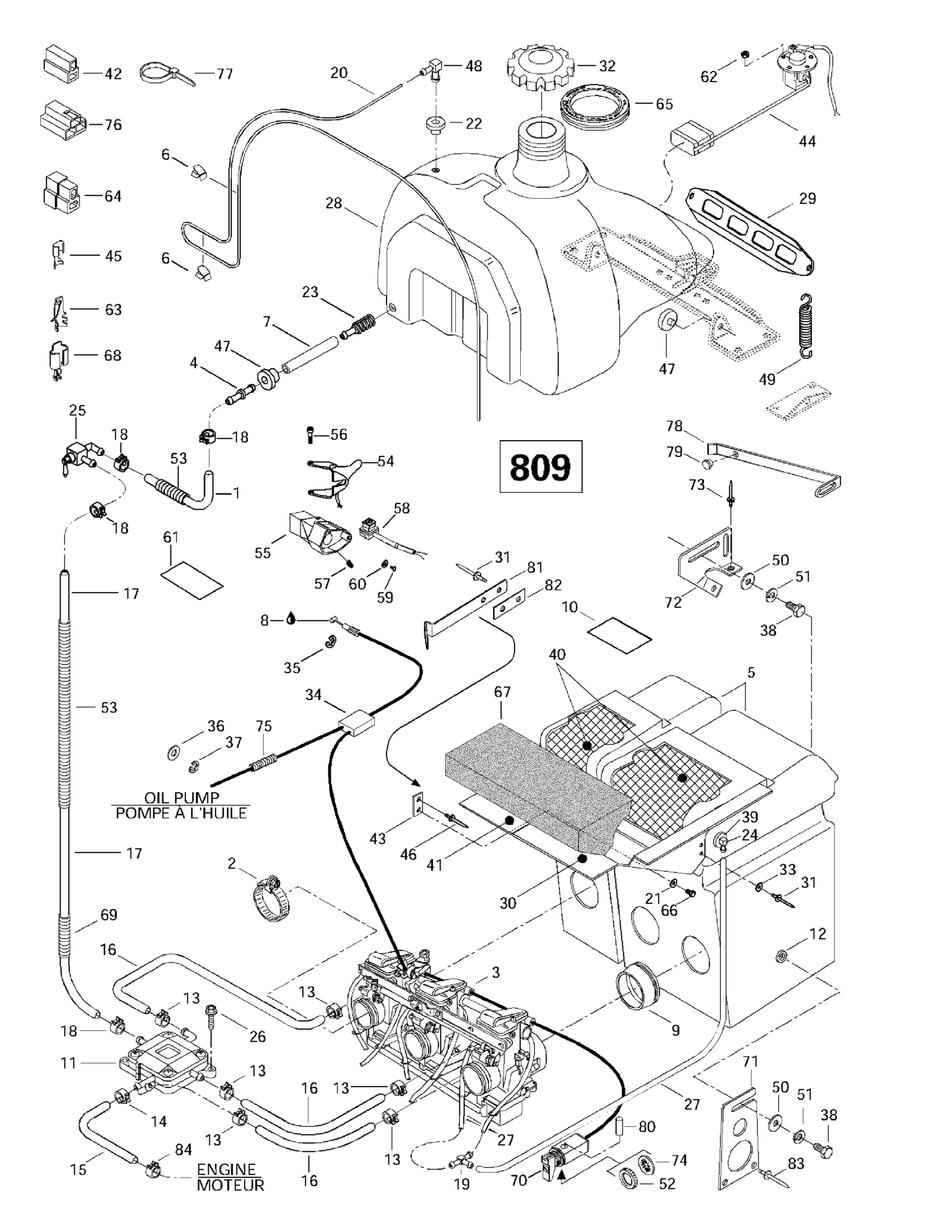 Ski-Doo Mach 1, 1997 02- Fuel System (809) Diagram