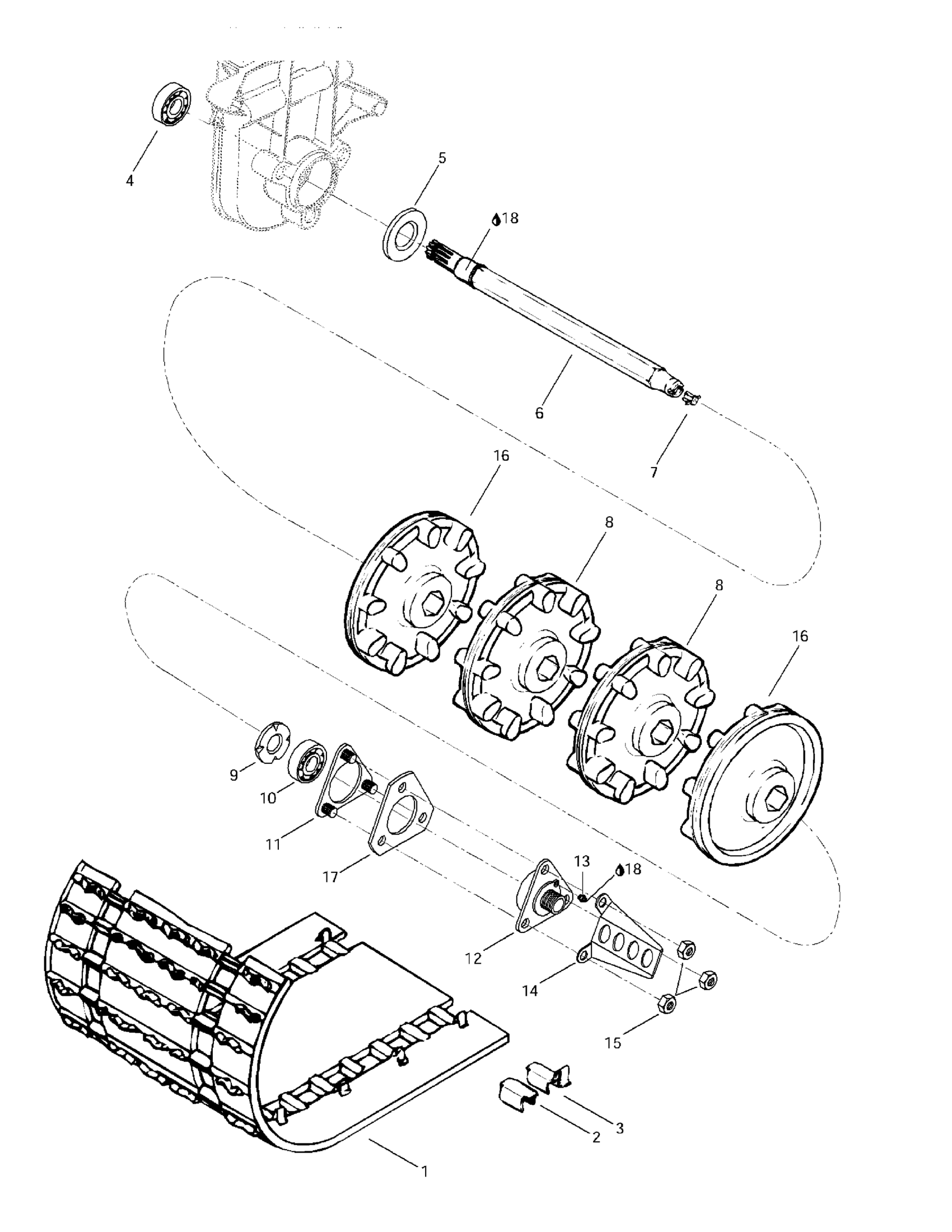 Ski-Doo Mach 1, 1997 Drive Axle And Track Diagram