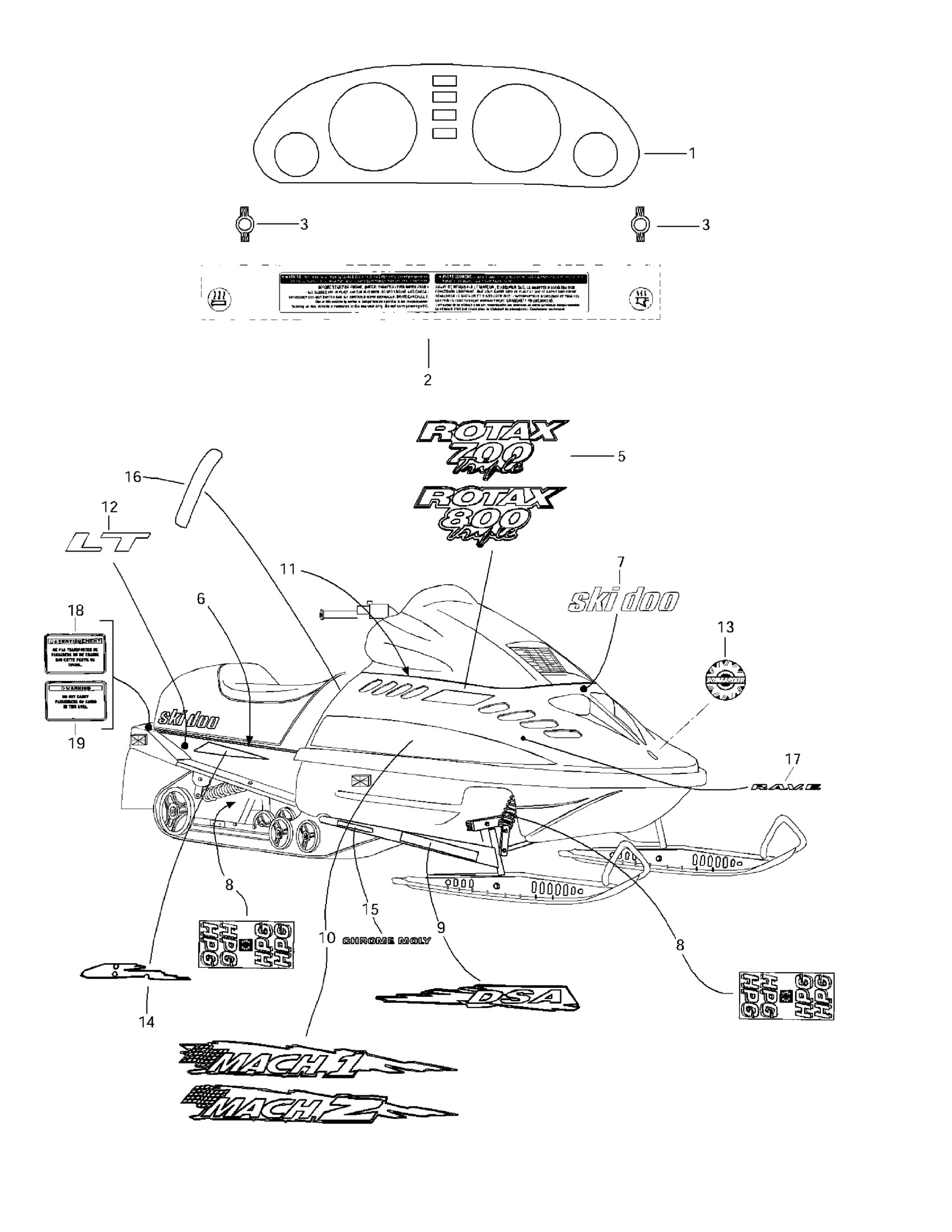 Ski-Doo Mach 1, 1997 Decals Diagram