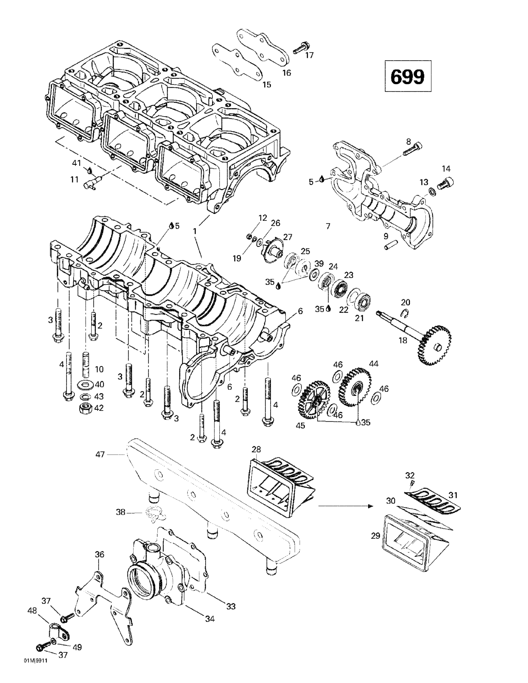 Ski-Doo Mach 1 R, 1999 Crankcase, Reed Valve, Water Pump (699) Diagram