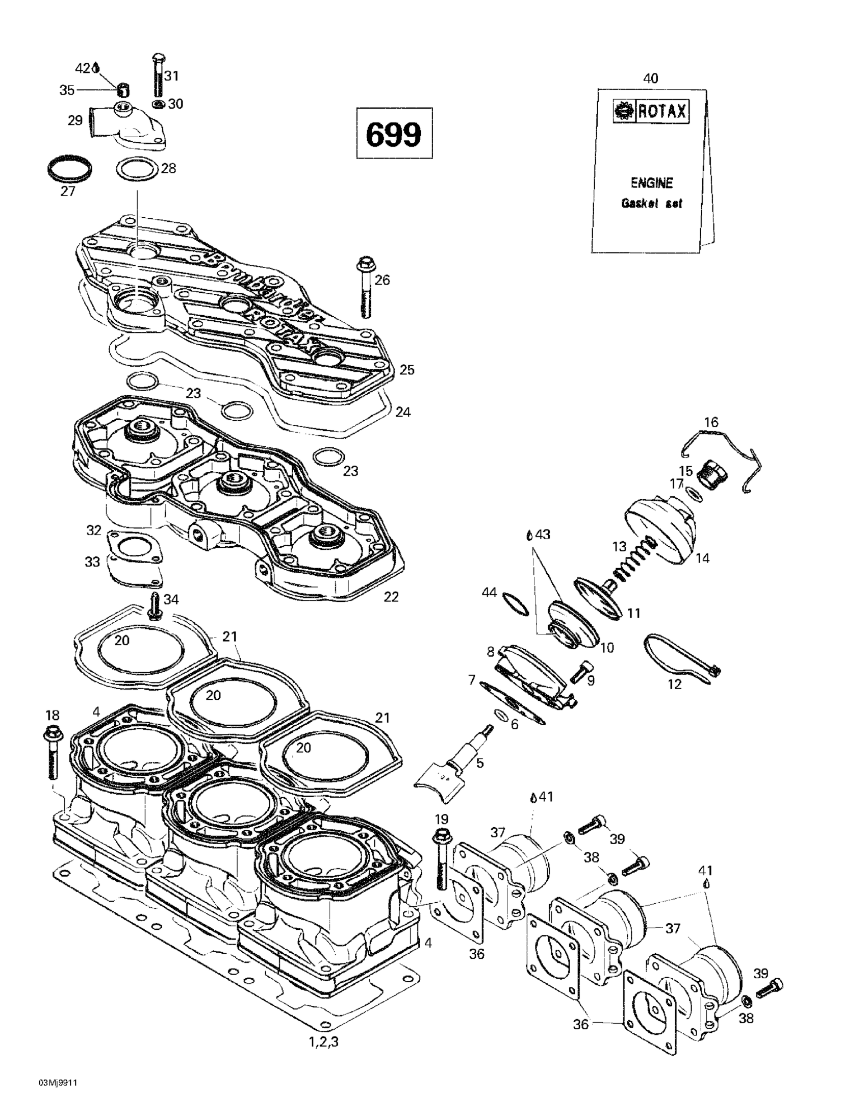 Ski-Doo Mach 1 R, 1999 Cylinder, Exhaust Manifold (699) Diagram