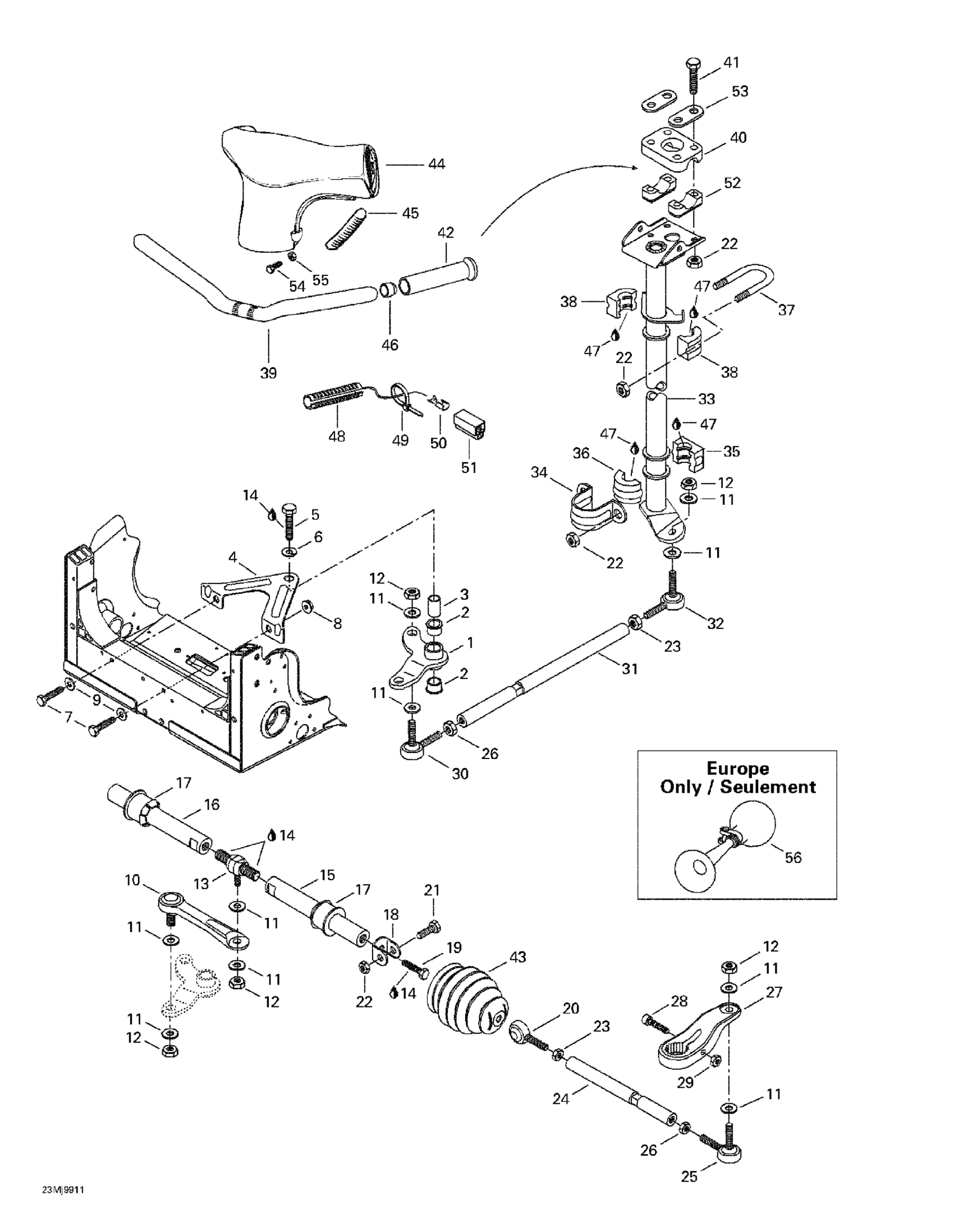 Ski-Doo Mach 1 R, 1999 Steering System Diagram