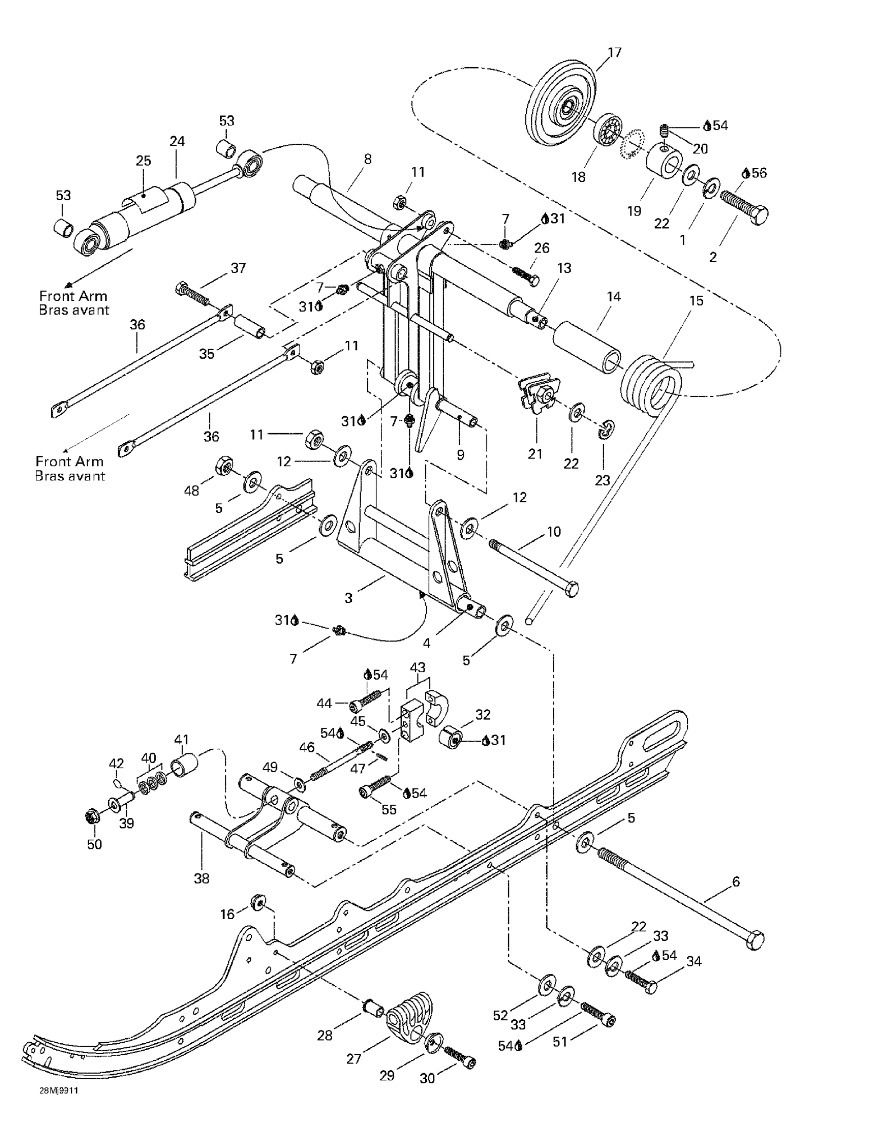 Ski-Doo Mach 1 R, 1999 Rear Arm, Rear Suspension Diagram