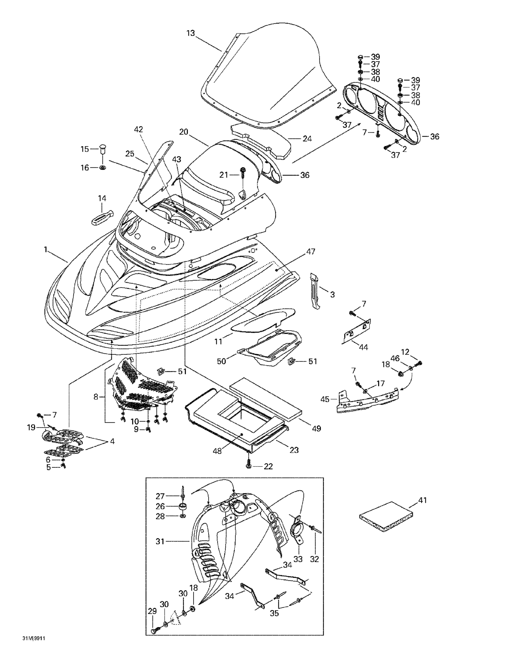 Ski-Doo Mach 1 R, 1999 Cab, Console Diagram