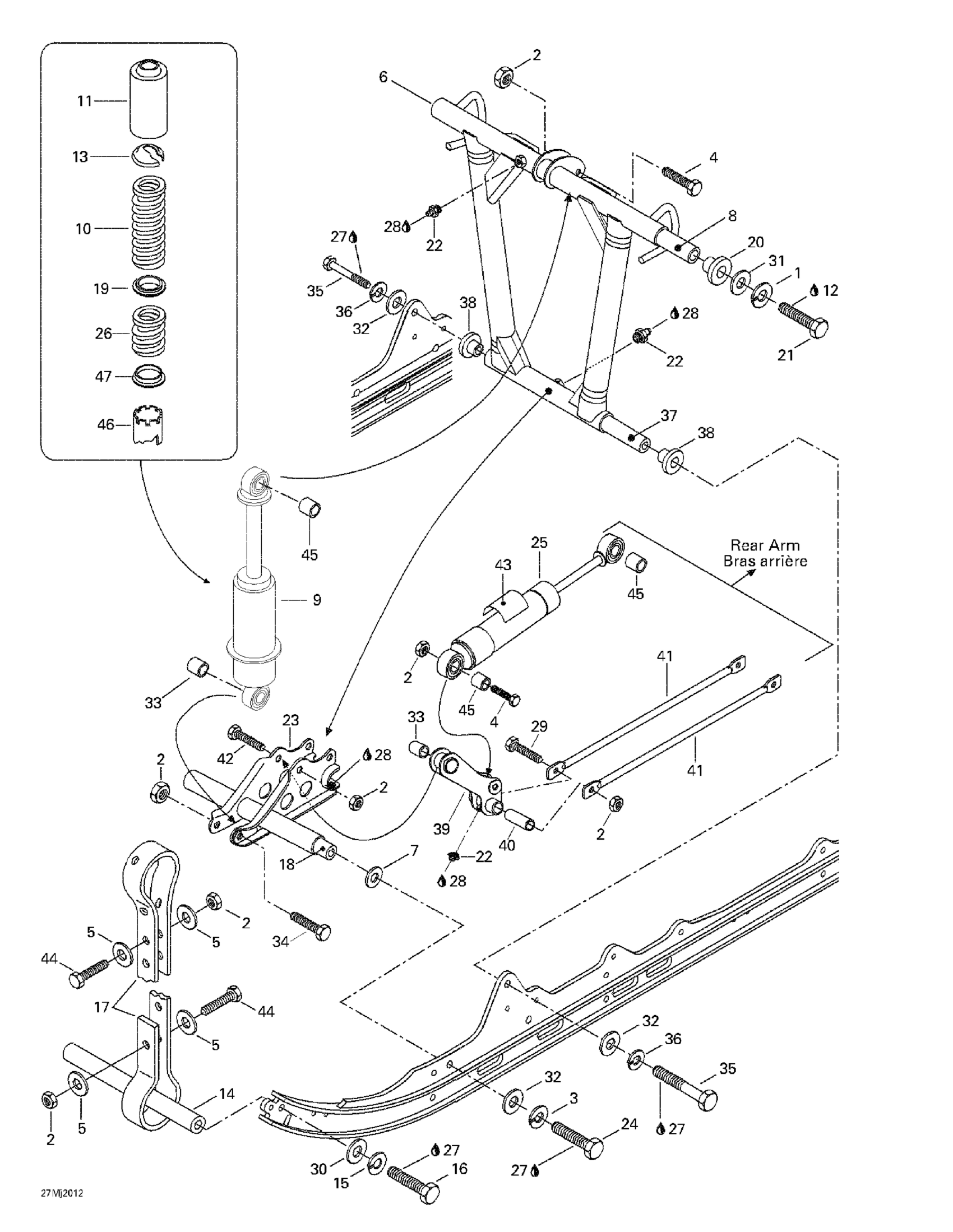 Ski-Doo Mach 1 R, 2000 Front Arm, Rear Suspension Diagram