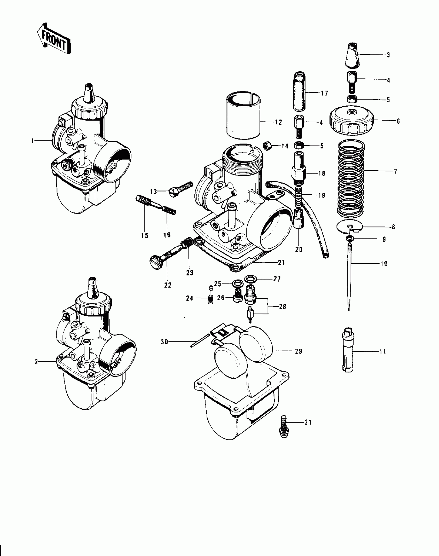 Kawasaki Mach II CARBURETORS ('74-'75 S3/S3-A) Diagram