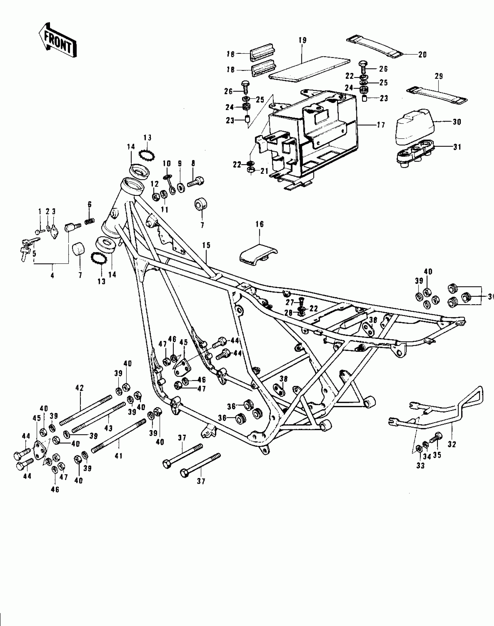 Kawasaki Mach II FRAME/FRAME FITTINGS ('74-'75 S3/S3-A) Diagram