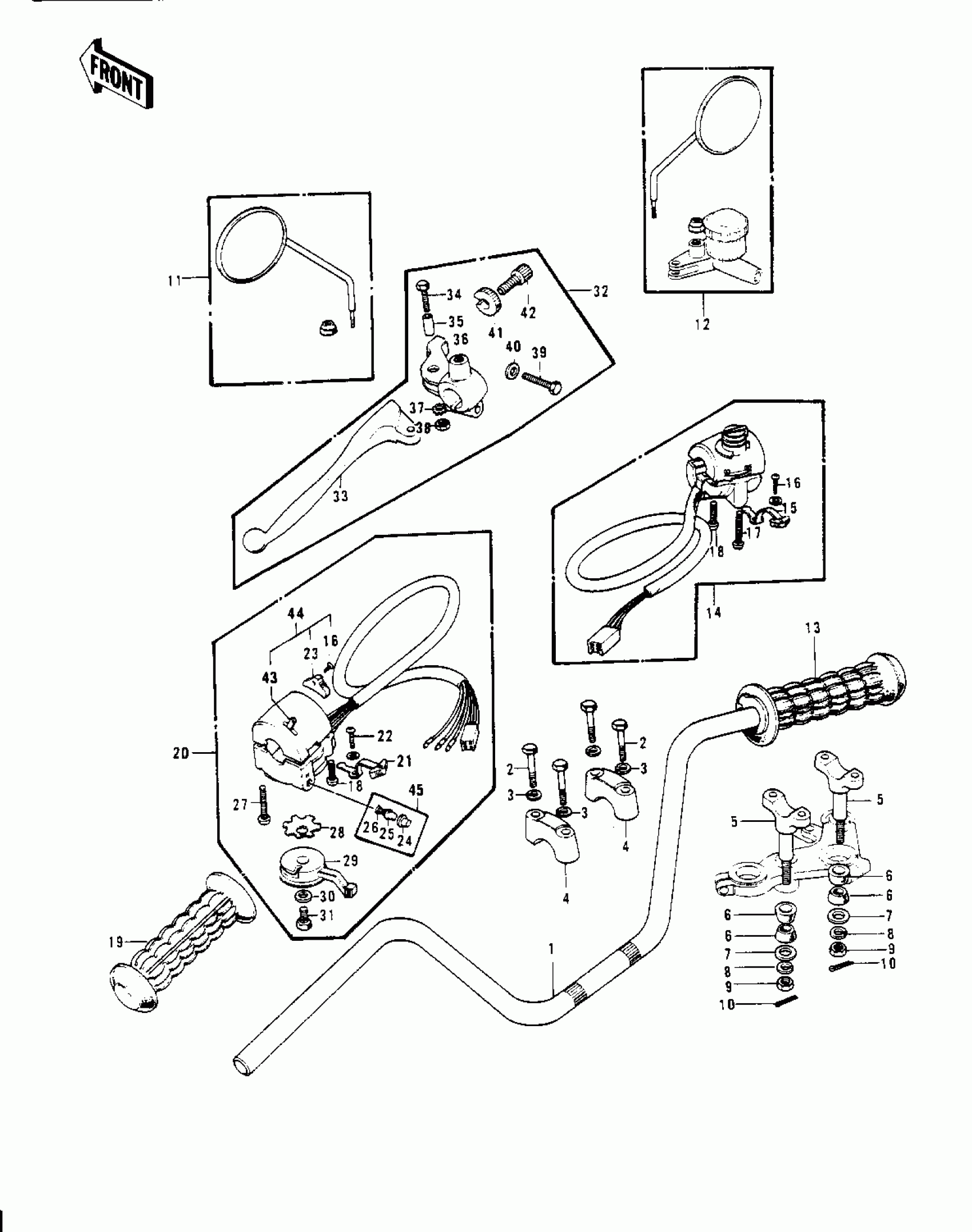 Kawasaki Mach II HANDLEBAR ('74-'75 S3/S3-A) Diagram