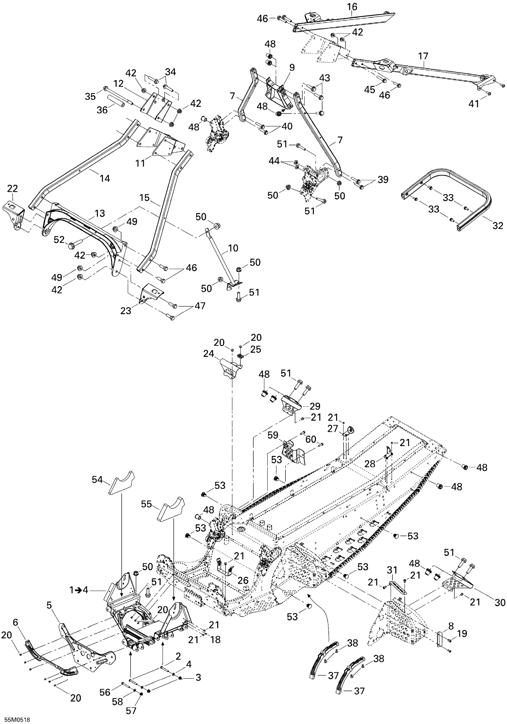 Ski-Doo Mach Z 1000 SDI, 2005 Frame and Components Diagram