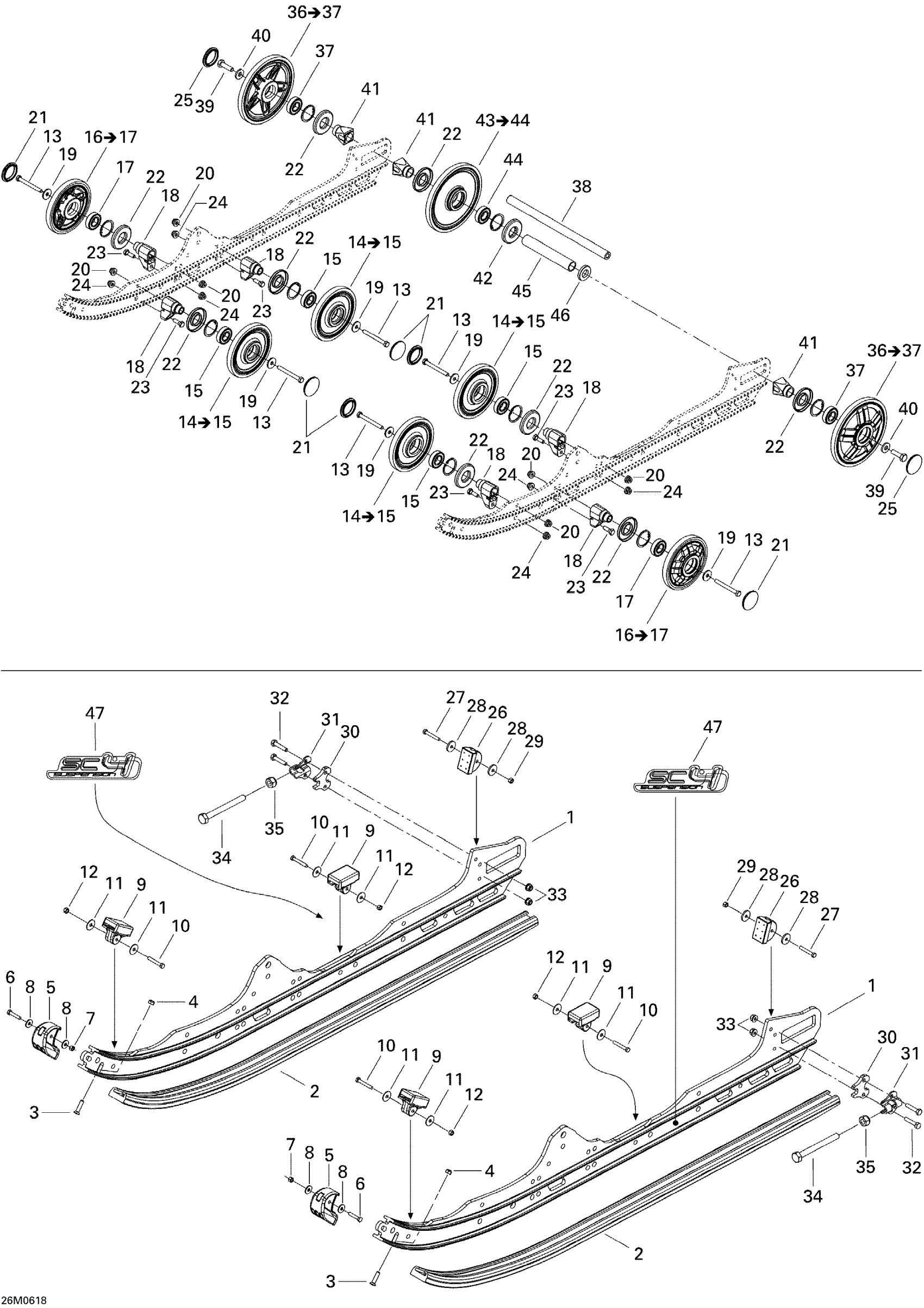 Ski-Doo Mach Z 1000 SDI Adrenaline & X, 2006 Rear Suspension Diagram