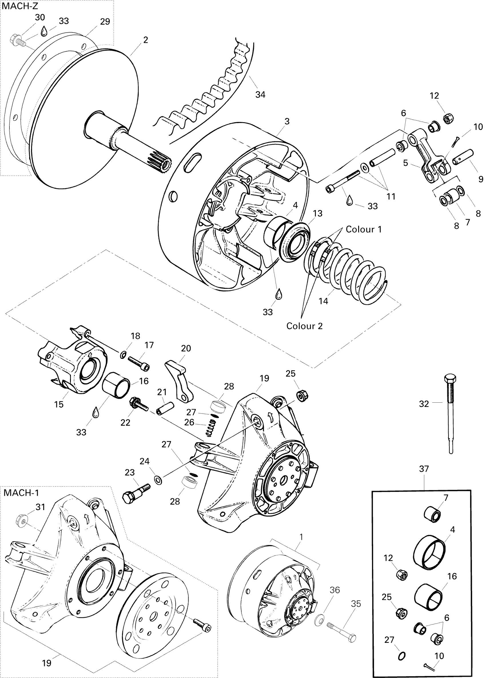 Ski-Doo Mach Z, 1996 Drive Pulley Mach Z Diagram