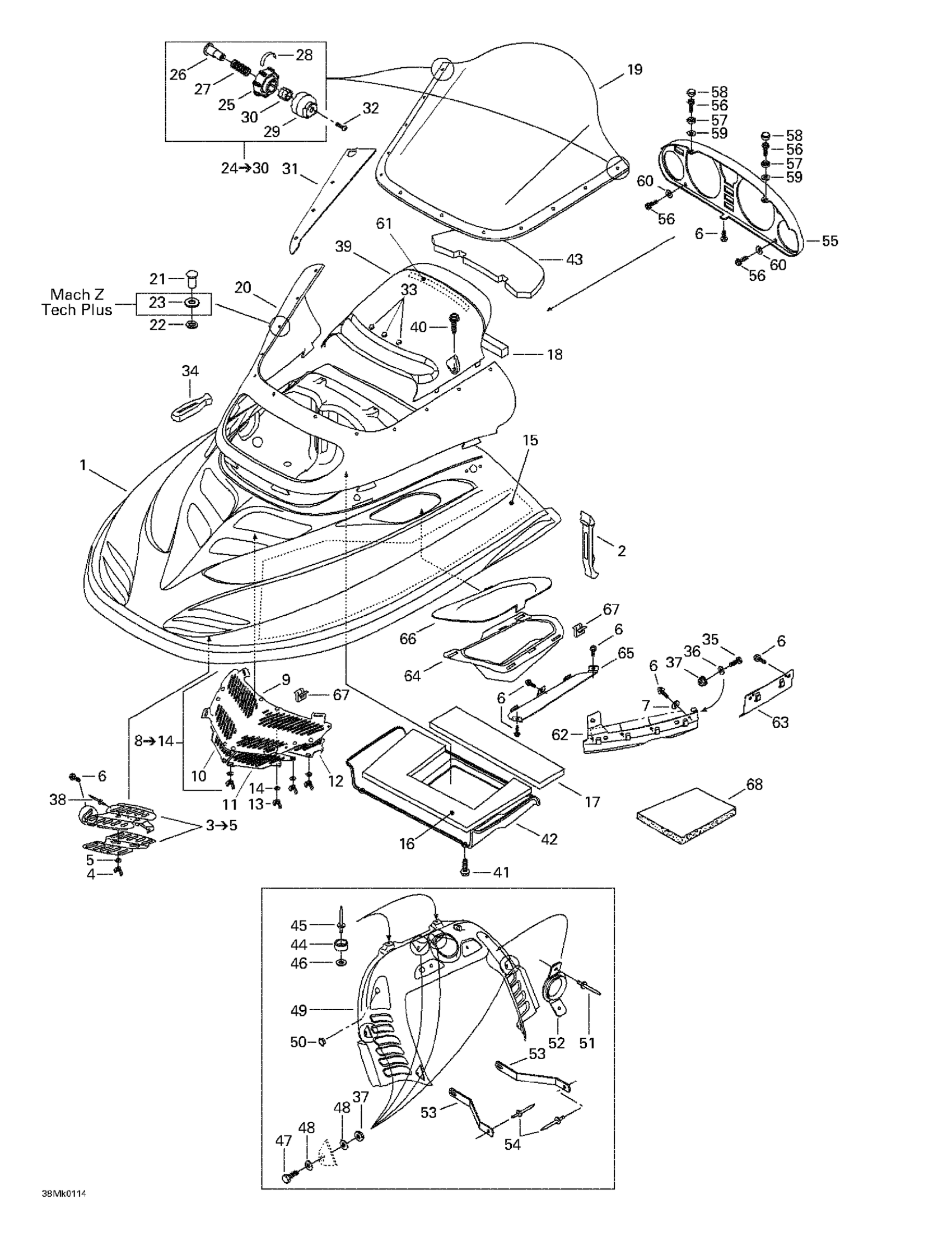 Ski-Doo Mach Z, 2001 Cab, Console Diagram